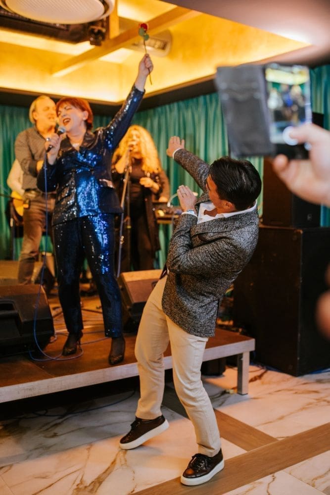 Večernji izlazak koji je trebao biti spontano druženje uz večeru s prijateljima pretvorio se u cjelonoćnu zabavu, a ponesen sjajnom atmosferom, Jole se kolegici Zorici pridružio na bini i zajedno s njom i zapjevao. Darivao je kolegicu i ružom i time pokazao koliko se međusobno cijene i obožavaju.
