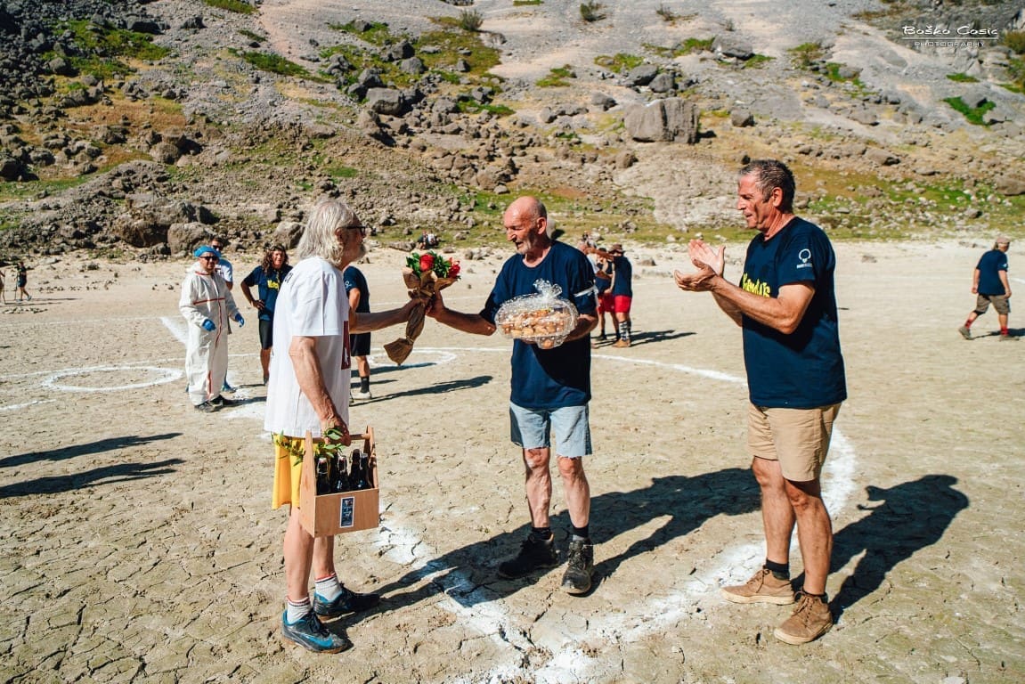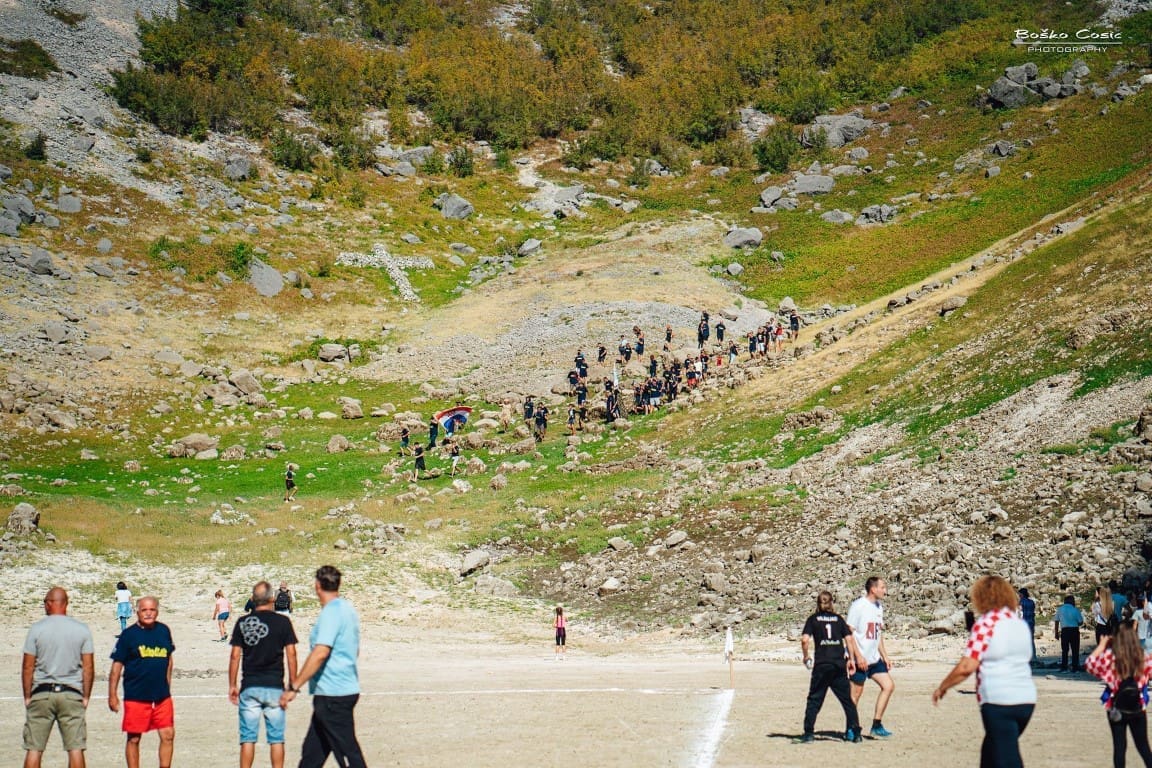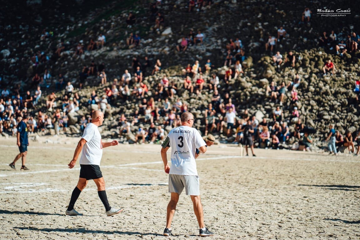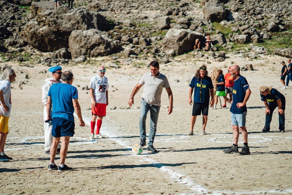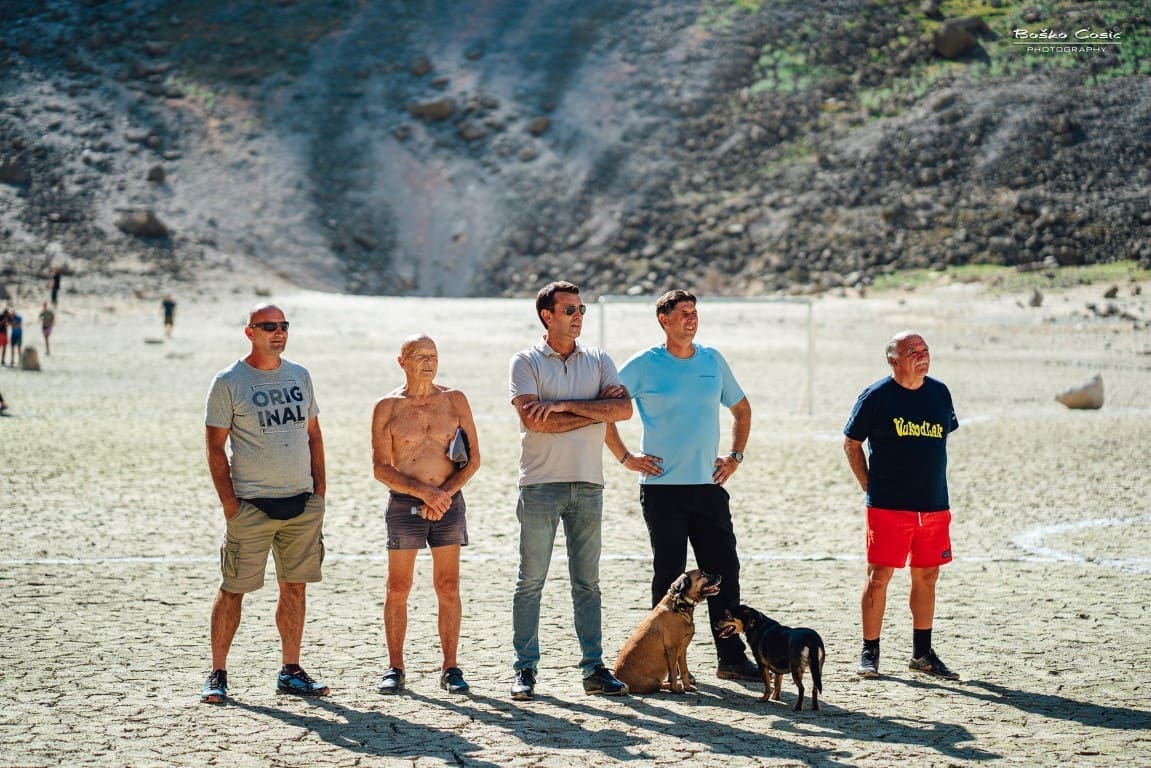 Jezero je presušilo još početkom rujna, no tek su se ovog vikenda stekli svi uvjeti za održavanje nogometnog spektakla. Bio je to 15. susret od početka tradicije.