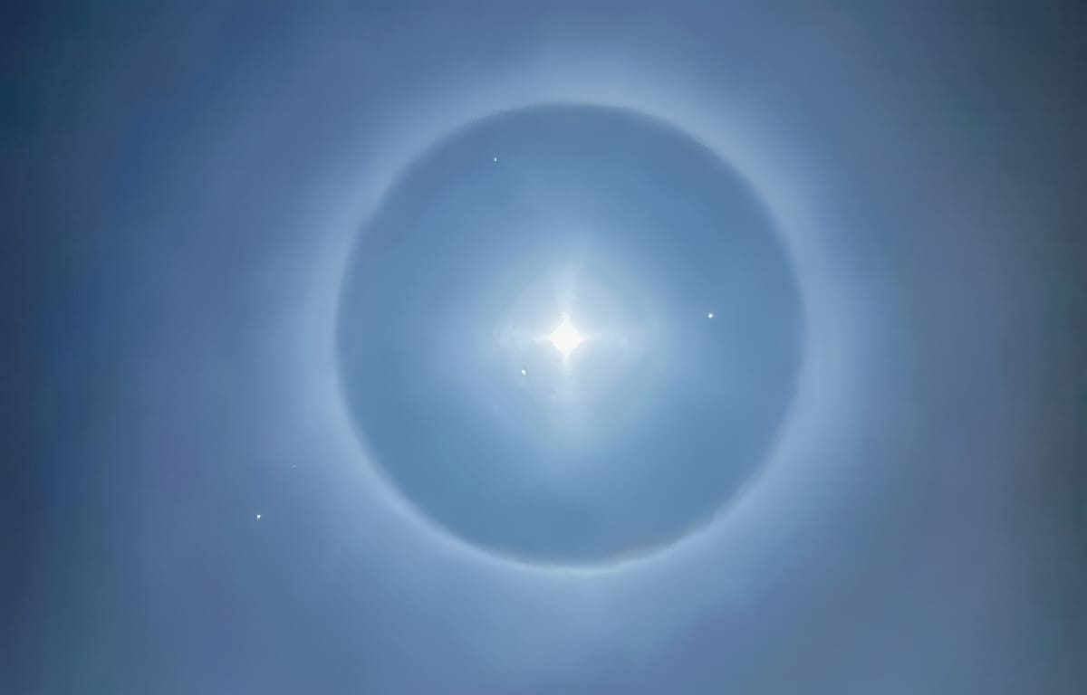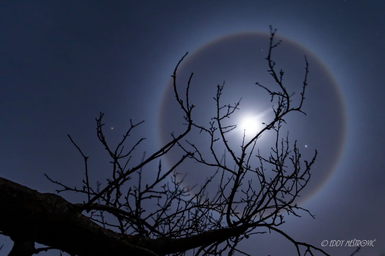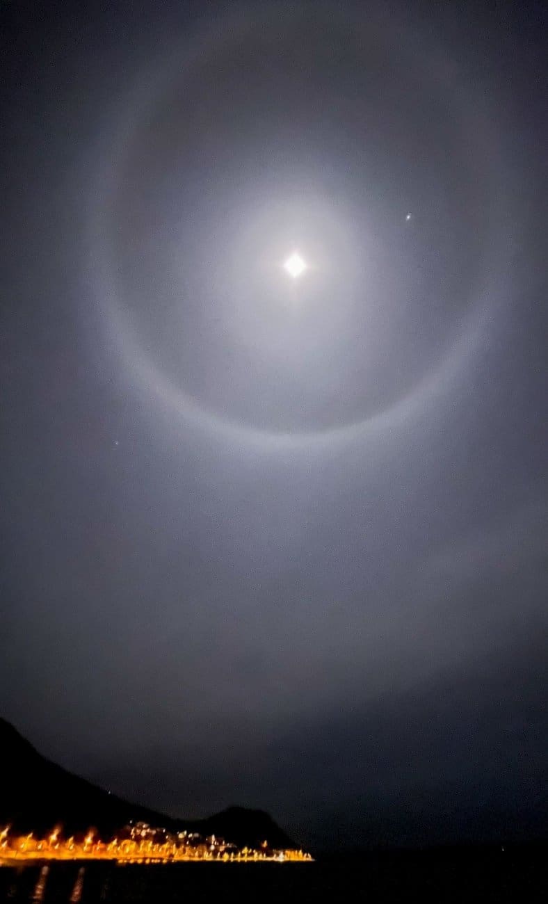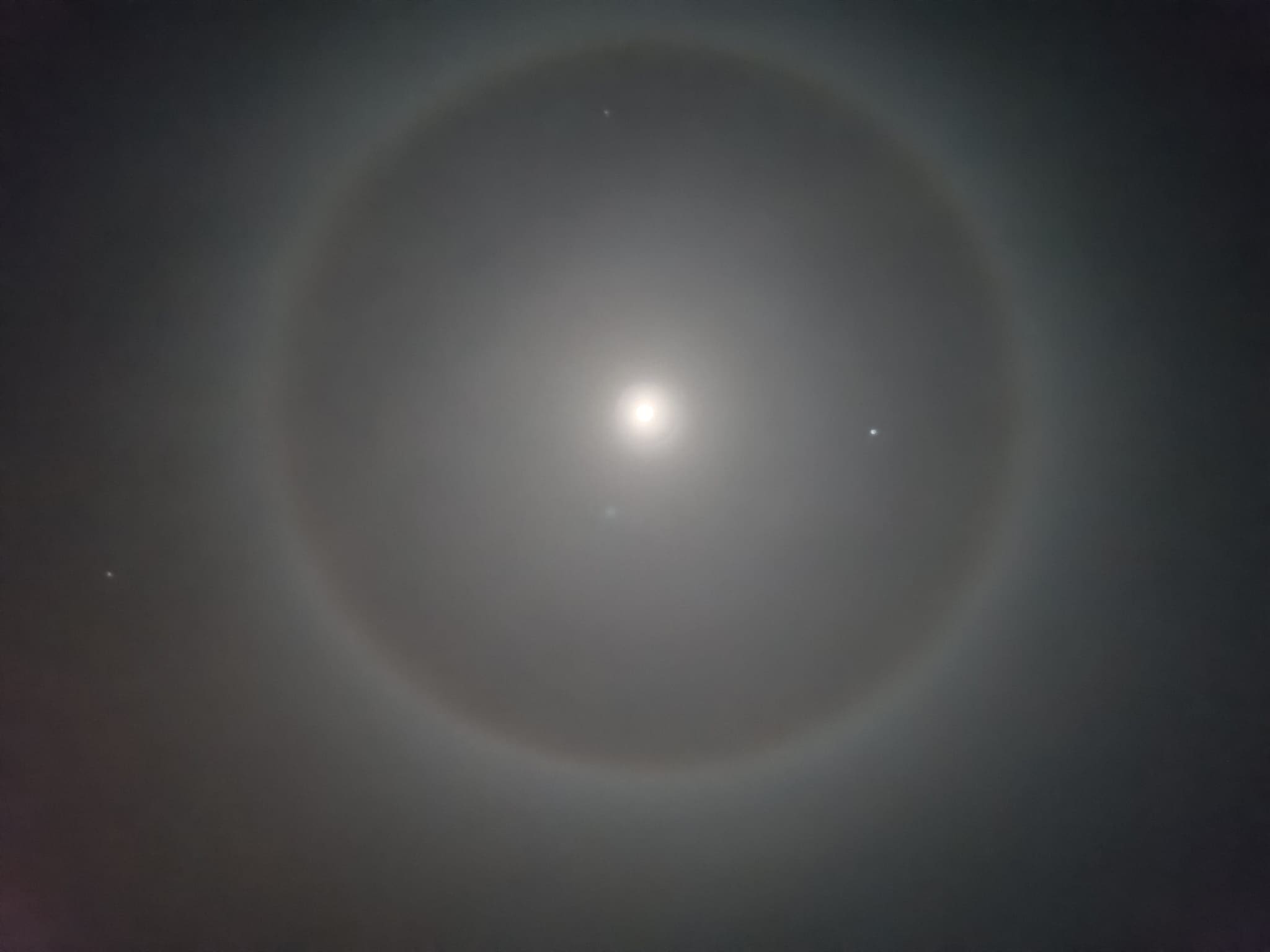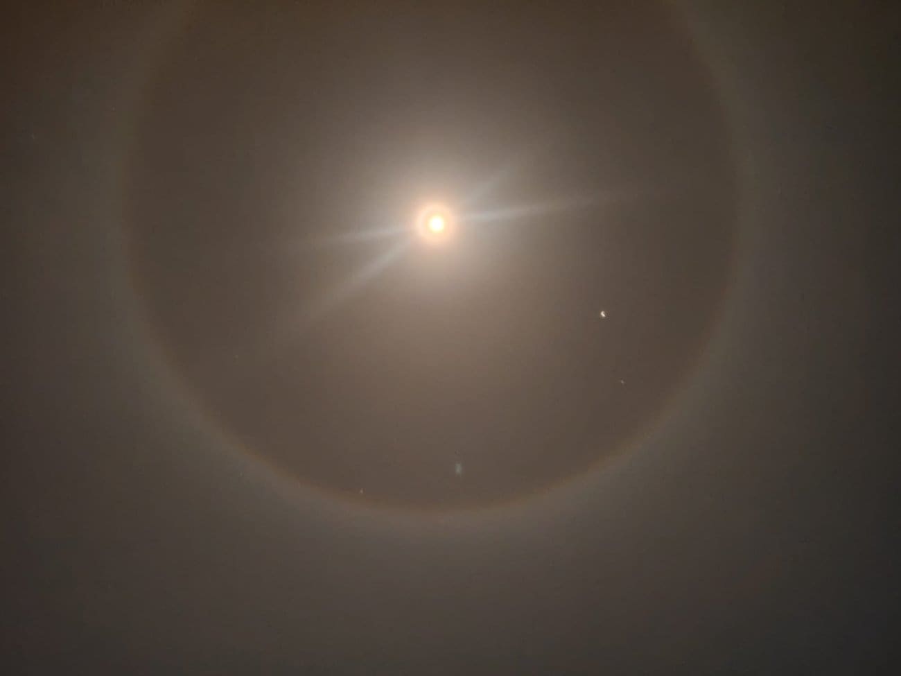 Slična pojava može se uočiti i noću oko Mjeseca, kada svjetlosni krug često djeluje zlokobno, premda je riječ o potpuno prirodnom i bezopasnom fenomenu.