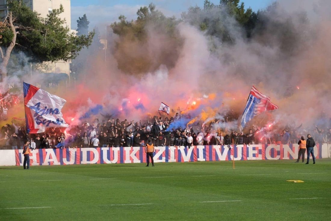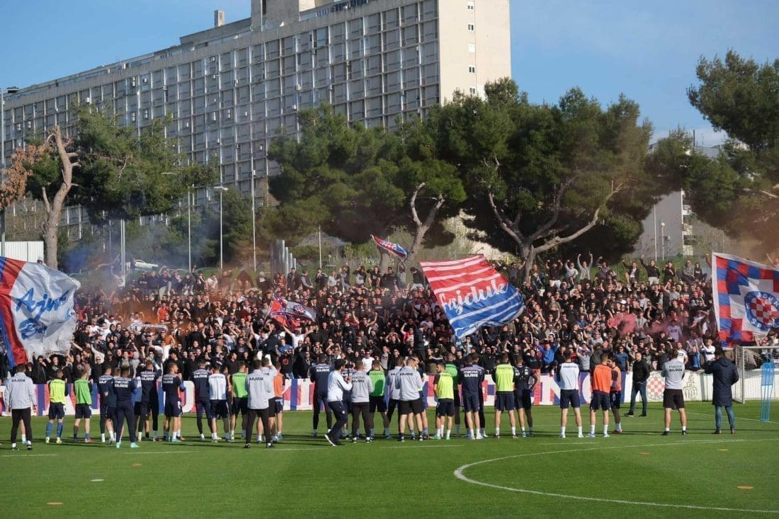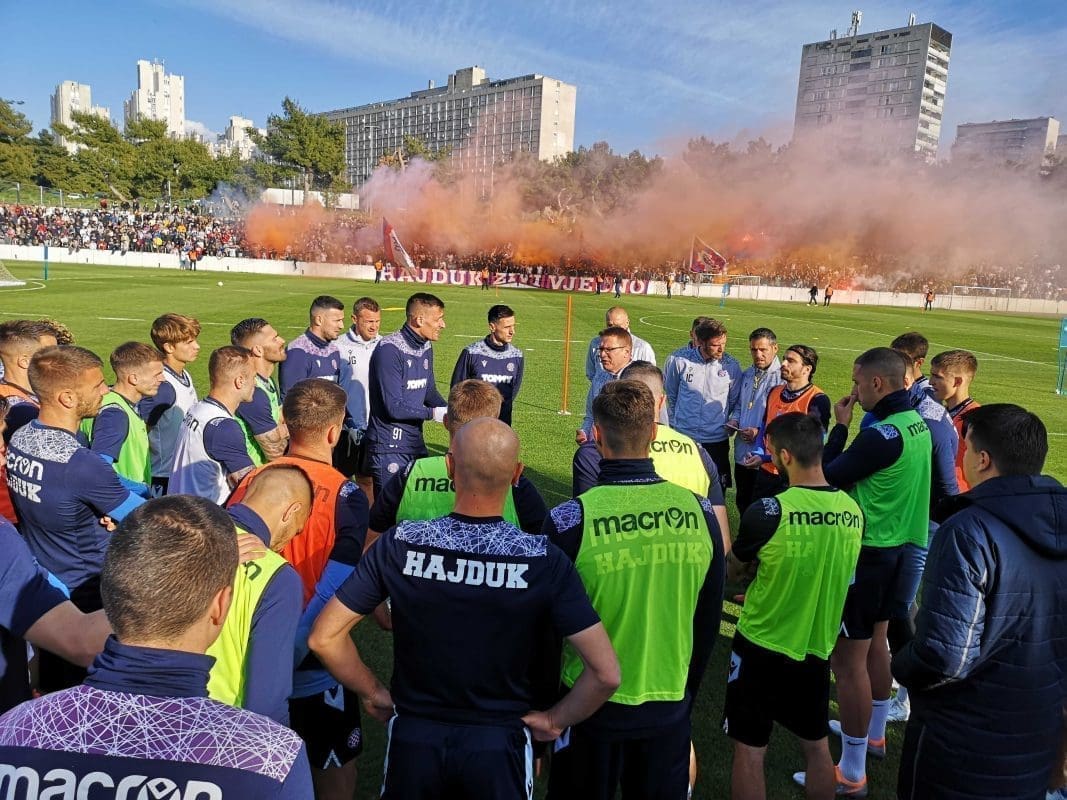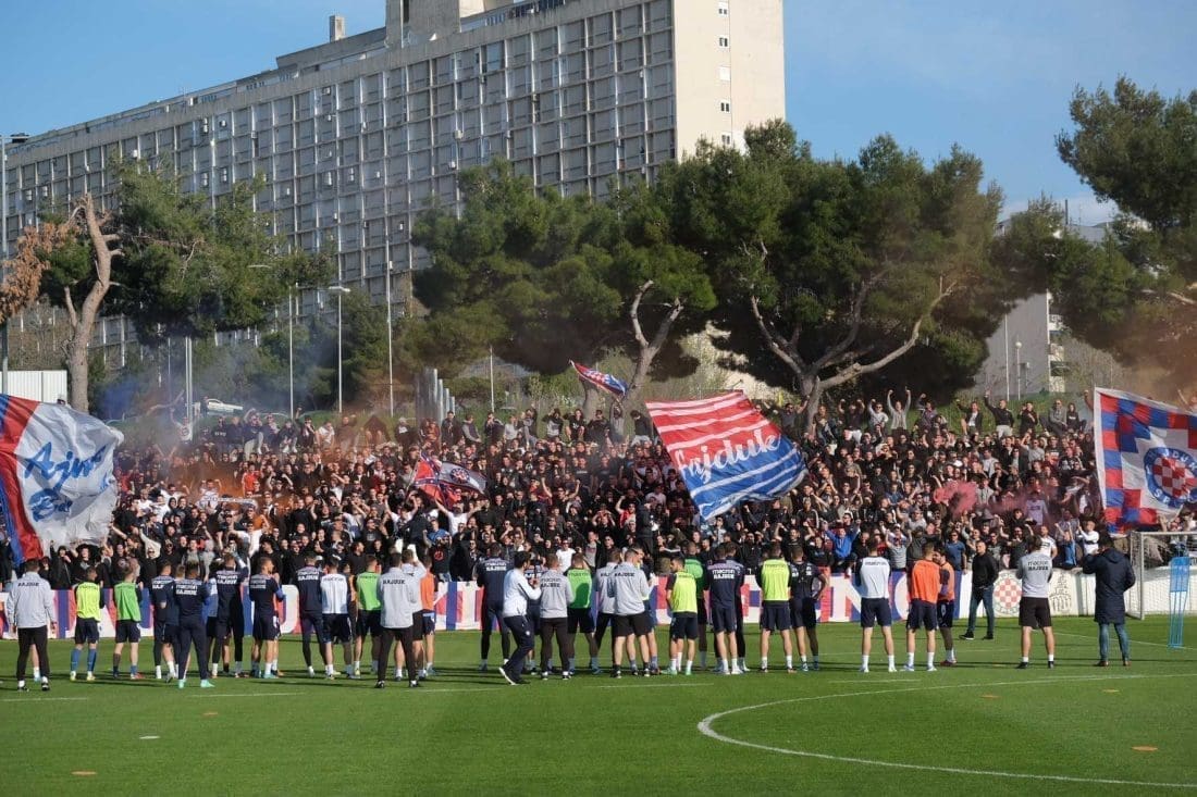 Naime, Valdas Dambrauskas je zakazao na pomoćnom terenu trening u 17 sati, a Torcida je napunila tribinu i priredila pravi spektakl.