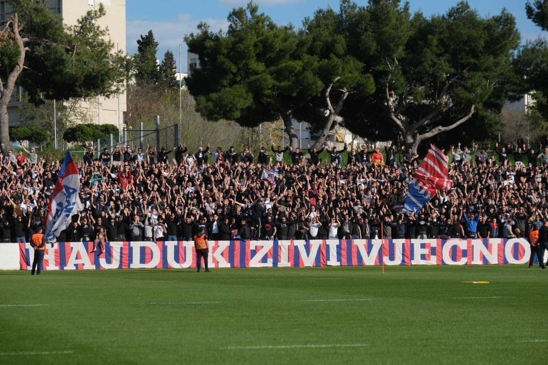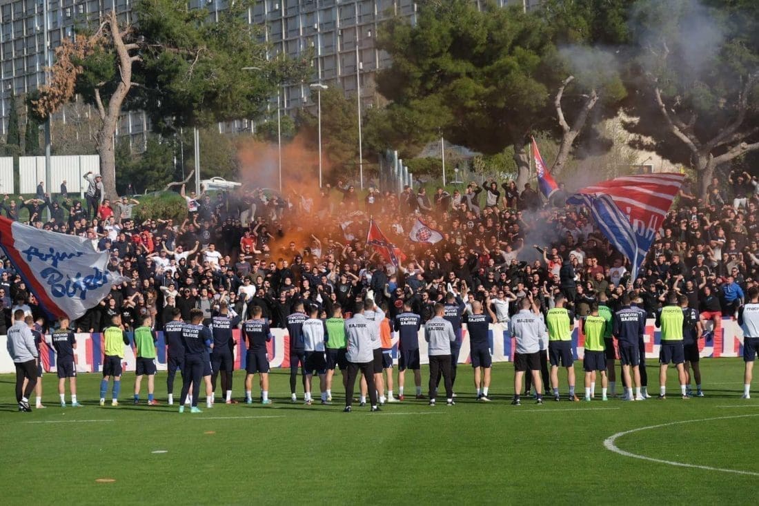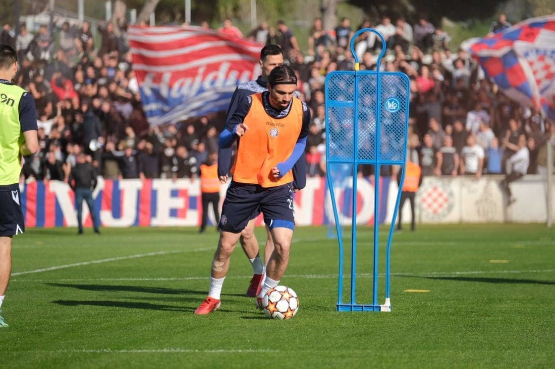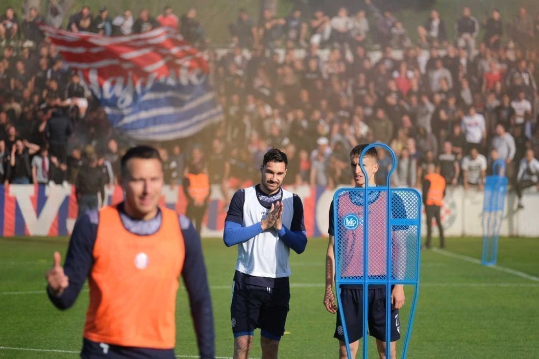 Naime, Valdas Dambrauskas je zakazao na pomoćnom terenu trening u 17 sati, a Torcida je napunila tribinu i priredila pravi spektakl.