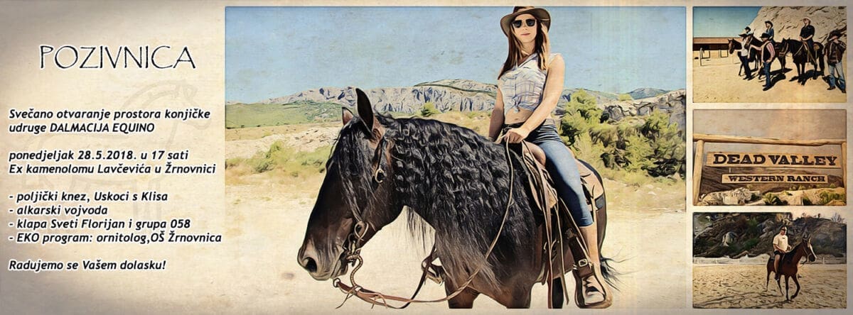 Sutra ste svi dobrodošli na svečano otvaranje novih prostora konjičke udruge Dalmacija Equino, doživite povijest, avanturu i ekologiju na jednom mjestu!