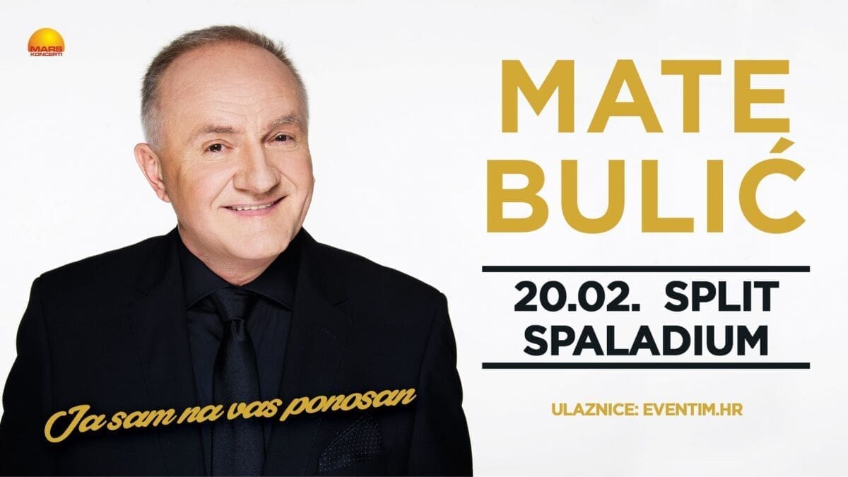 Bliži se veljača i dvoranska turneja jednog od najpopularnijih glazbenika s ovih prostora, legendarnog Mate Bulića. Nakon više od 30 godina uspješne karijere Mate je odlučio svojoj publici upriličiti tri velika koncertna spektakla i to 20. veljače u splitskoj Spaladium Areni, 22. veljače u Gradskom vrtu Osijek, dok će 29. veljače trijumfirati pred zagrebačkom publikom u sportskoj dvorani Dražena Petrovića.