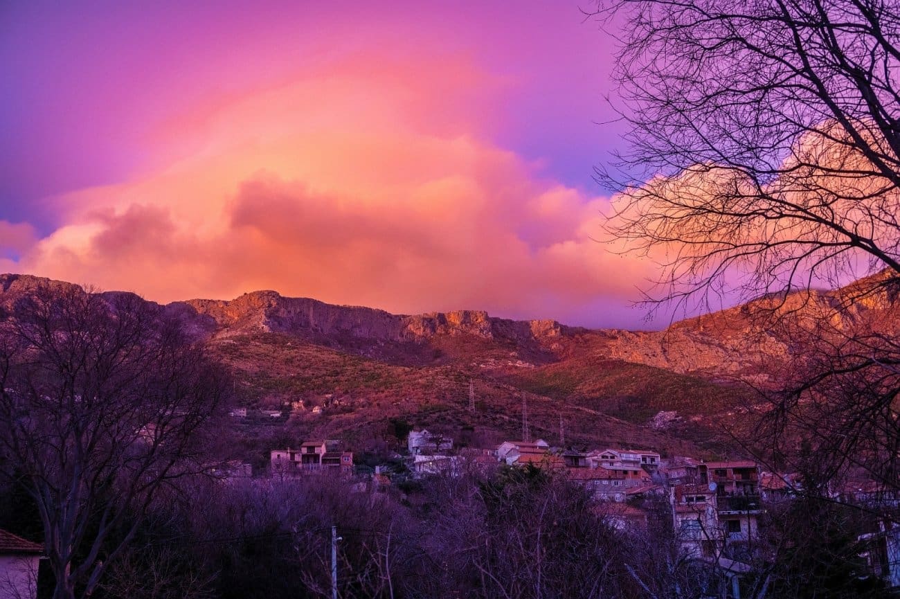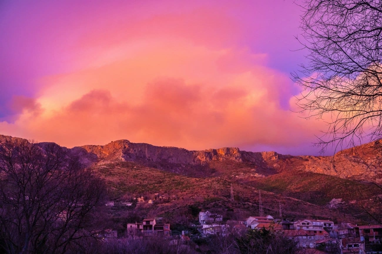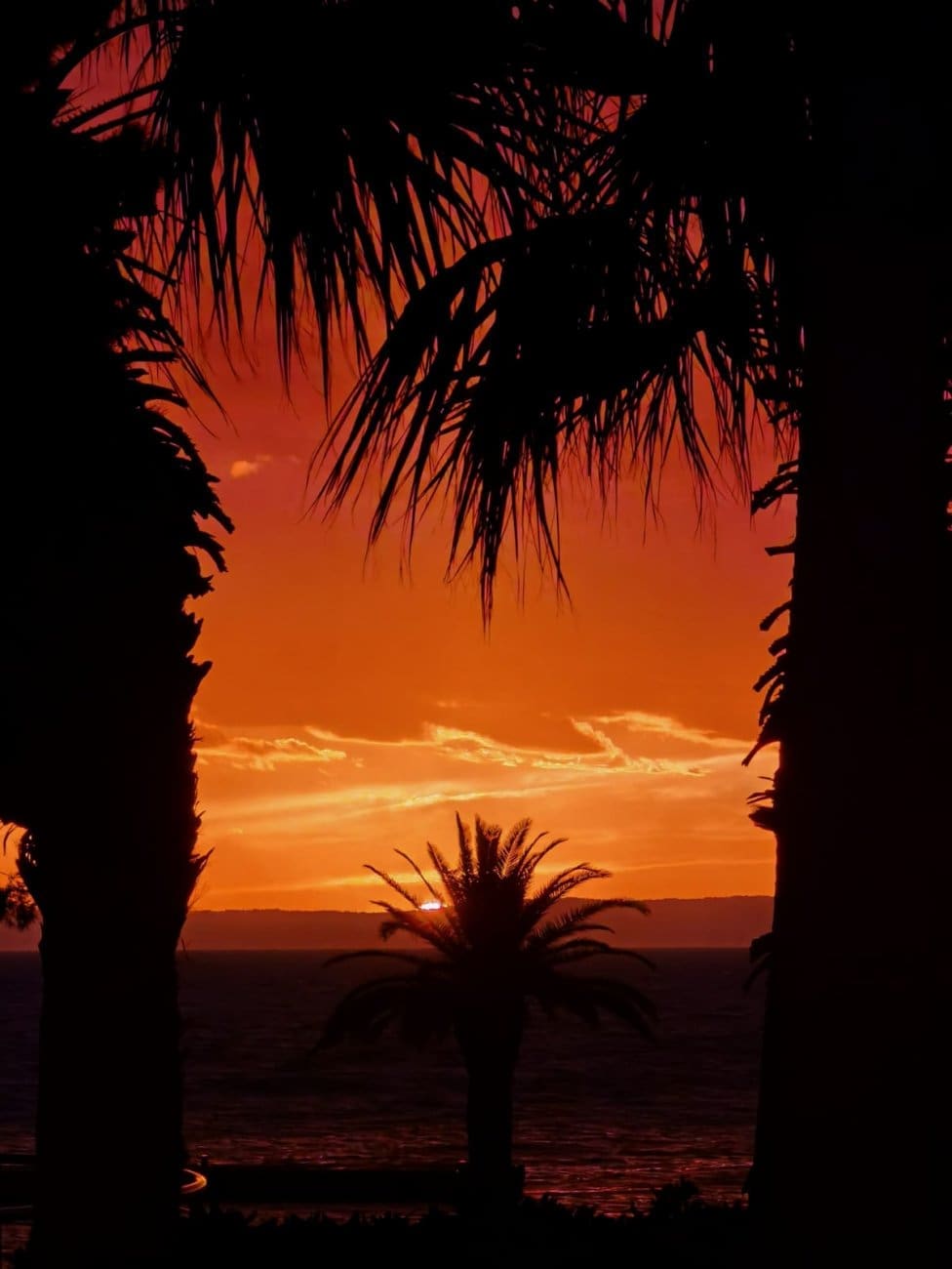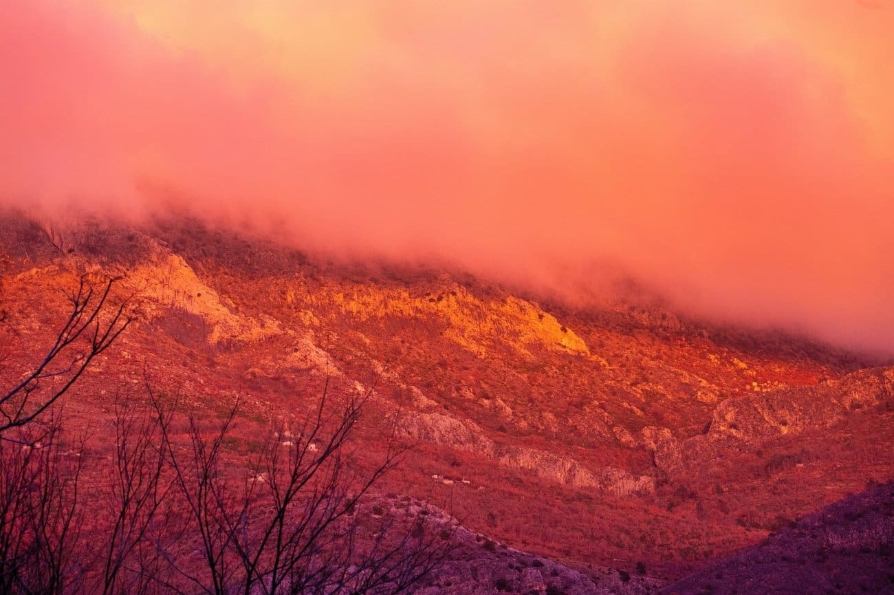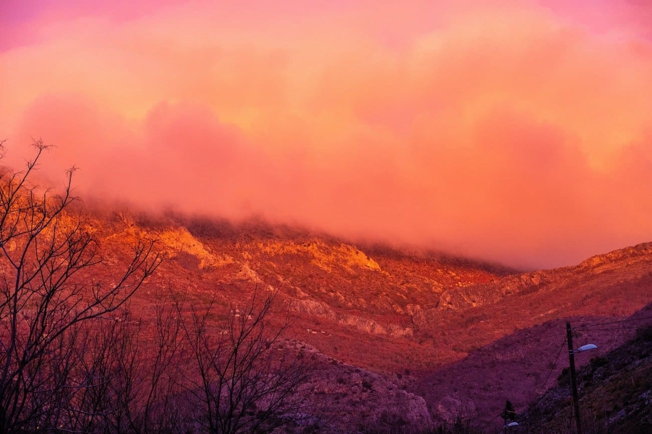 Kraj dana obilježio je lijep zalazak sunca koji je osobito na splitskom području intenzivno crvene boje. Naoblaka je napukla na krajnjem zapadu pa su zrake sunca obojile grad, otoke, Mosor.
