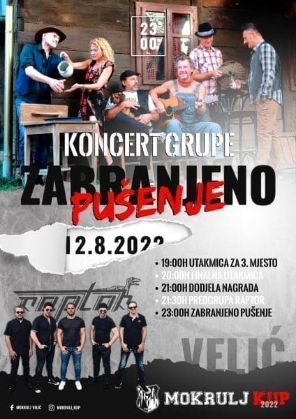 Nakon finalne utakmice, koja se igra u 20 sati, slijedi spektakl. Prvo će na pozornicu grupa Raptor, a nakon njih će nastupiti legendarno Zabranjeno pušenje.