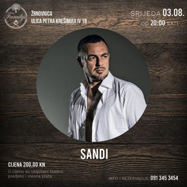 Osim Zorice Kondže, Familija je za 8. mjesec pripremila niz vrhunskih nastupa uživo srijedom od kojih je prvi na redu koncert Sandija Cenova koji nas očekuje već sutra 3.8. s početkom u 20:00 sati. Srijeda 17.8. je rezervirana za duo Matko i Brane, tjedan iza za Petra Dragojevića, a posljednja srijeda u kolovozu za Marka Pecotića Pecu. Cijena ulaznice za ove koncerte je 200 kn po osobi (osim koncerta Zorice Kondže 250 kn po osobi) i u nju su uključeni hladno predjelo i mesna plata.