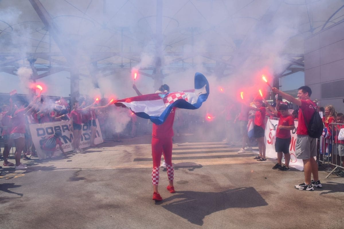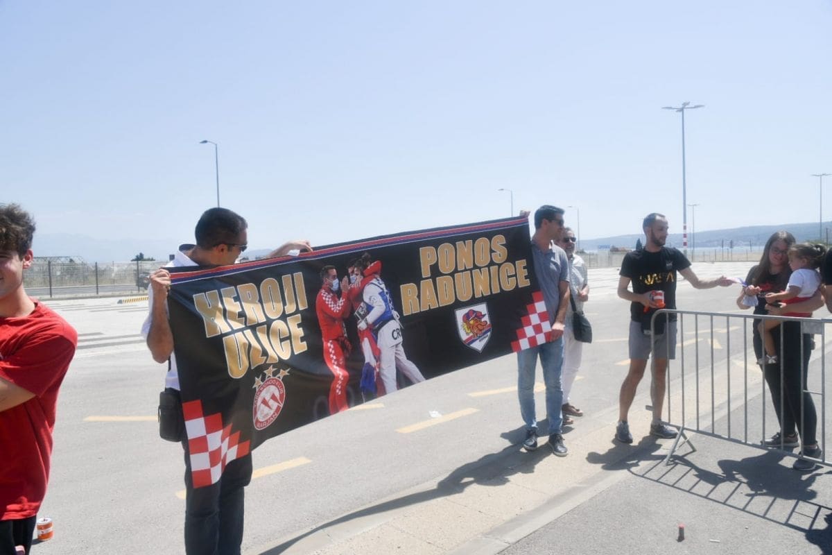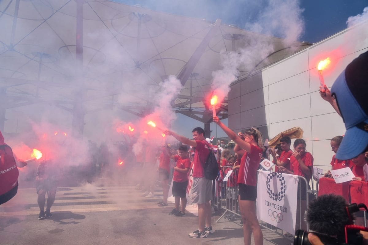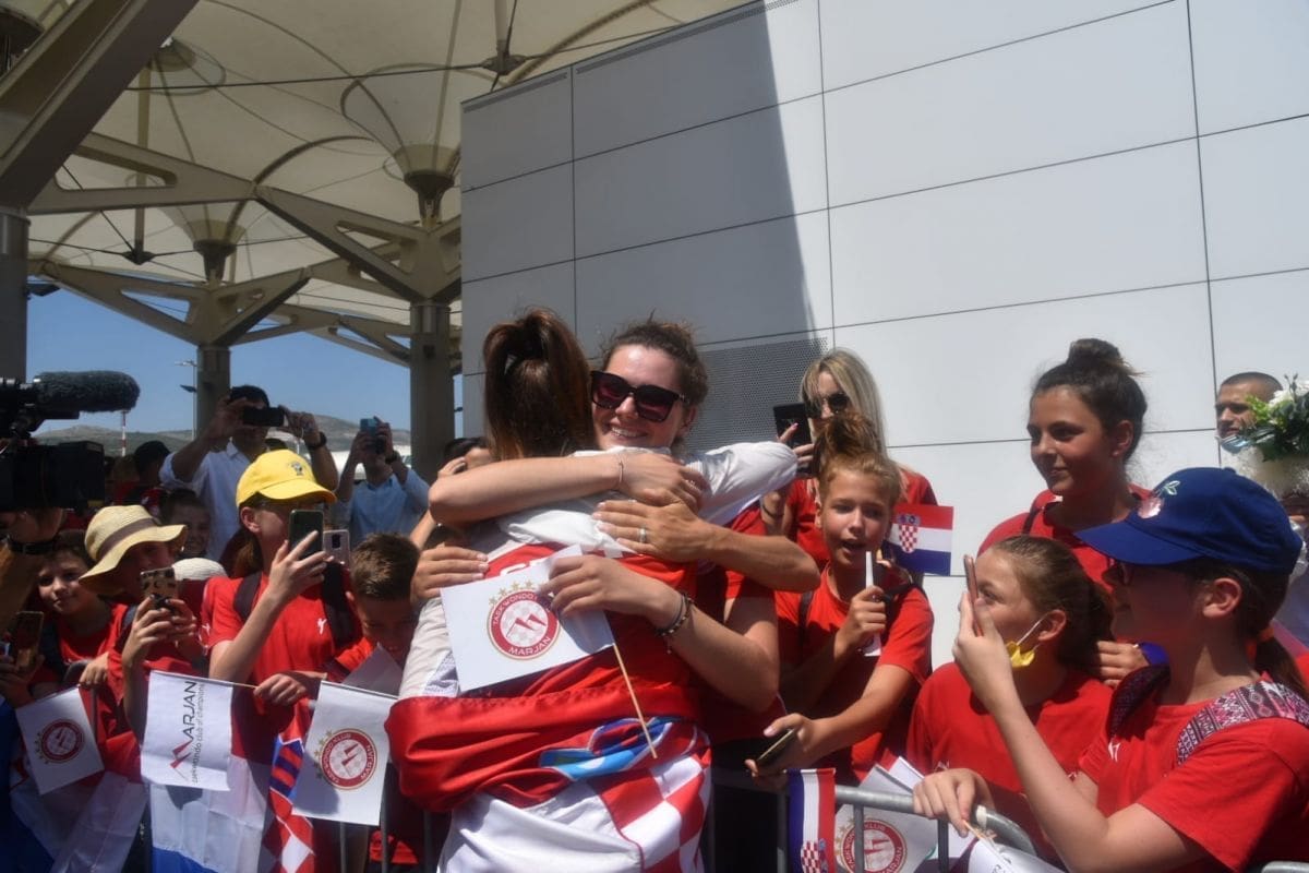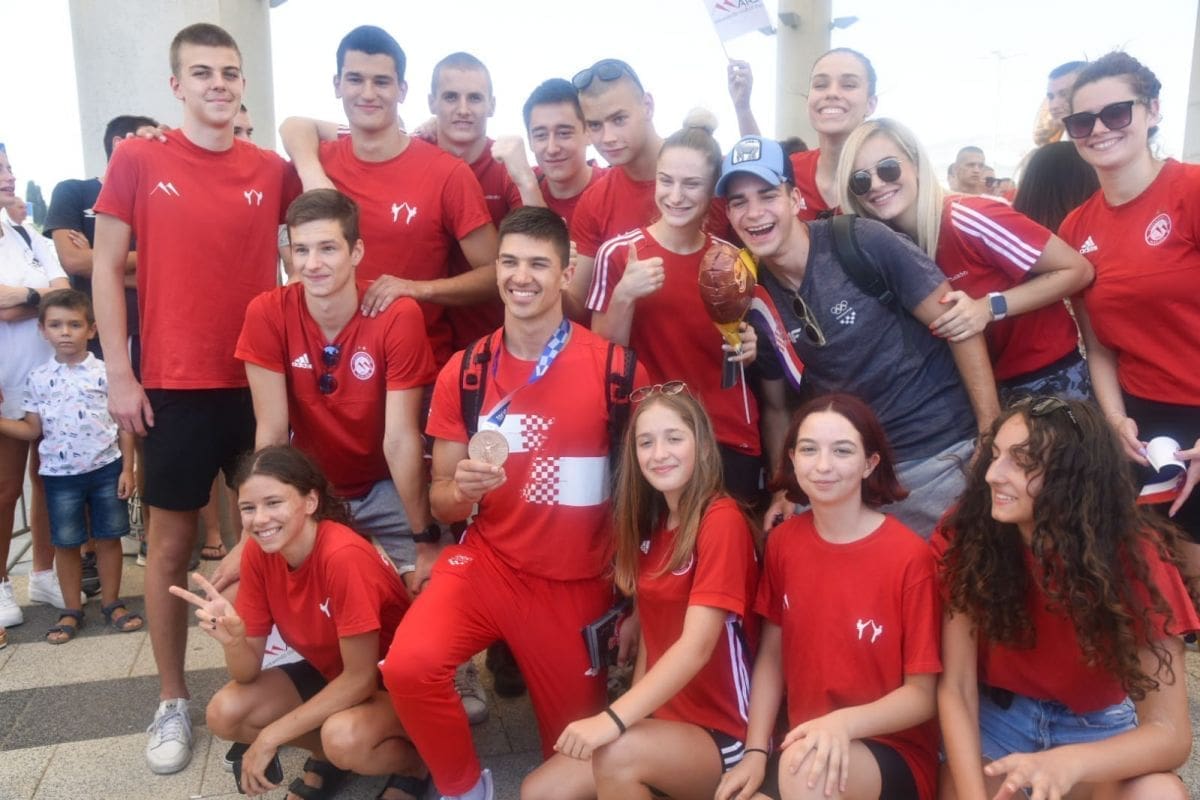 Špalir za medaljaše iz Tokija priredili su kolege iz kluba Marjan na izlazu iz zračne luke u Kaštelima uz gromoglasan pljesak, baklje, hrvatsku zastavu i povike 'Šampioni!'. Dijelili su autograme i brošure, a pala je i koja suza radosnica.