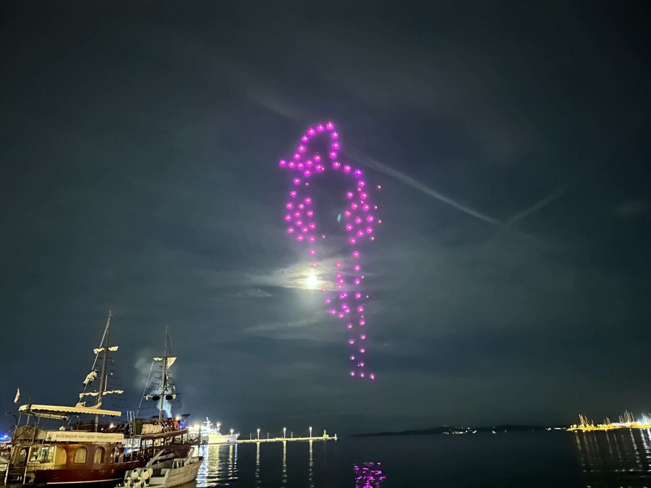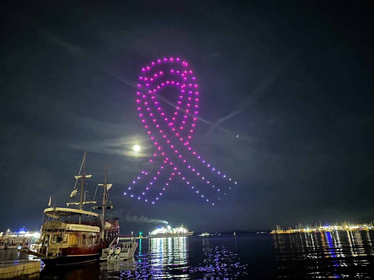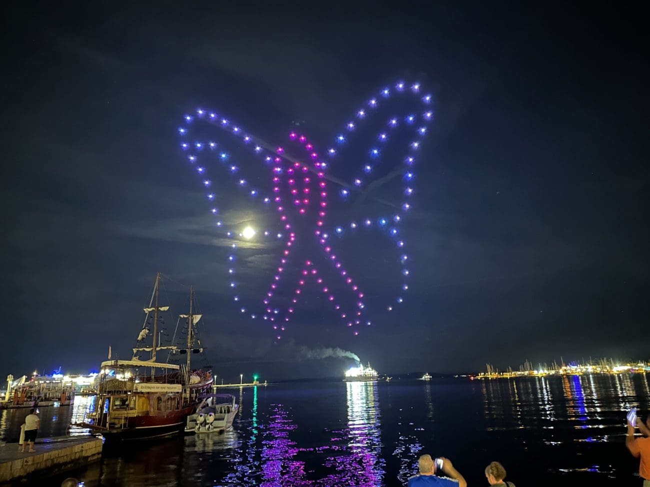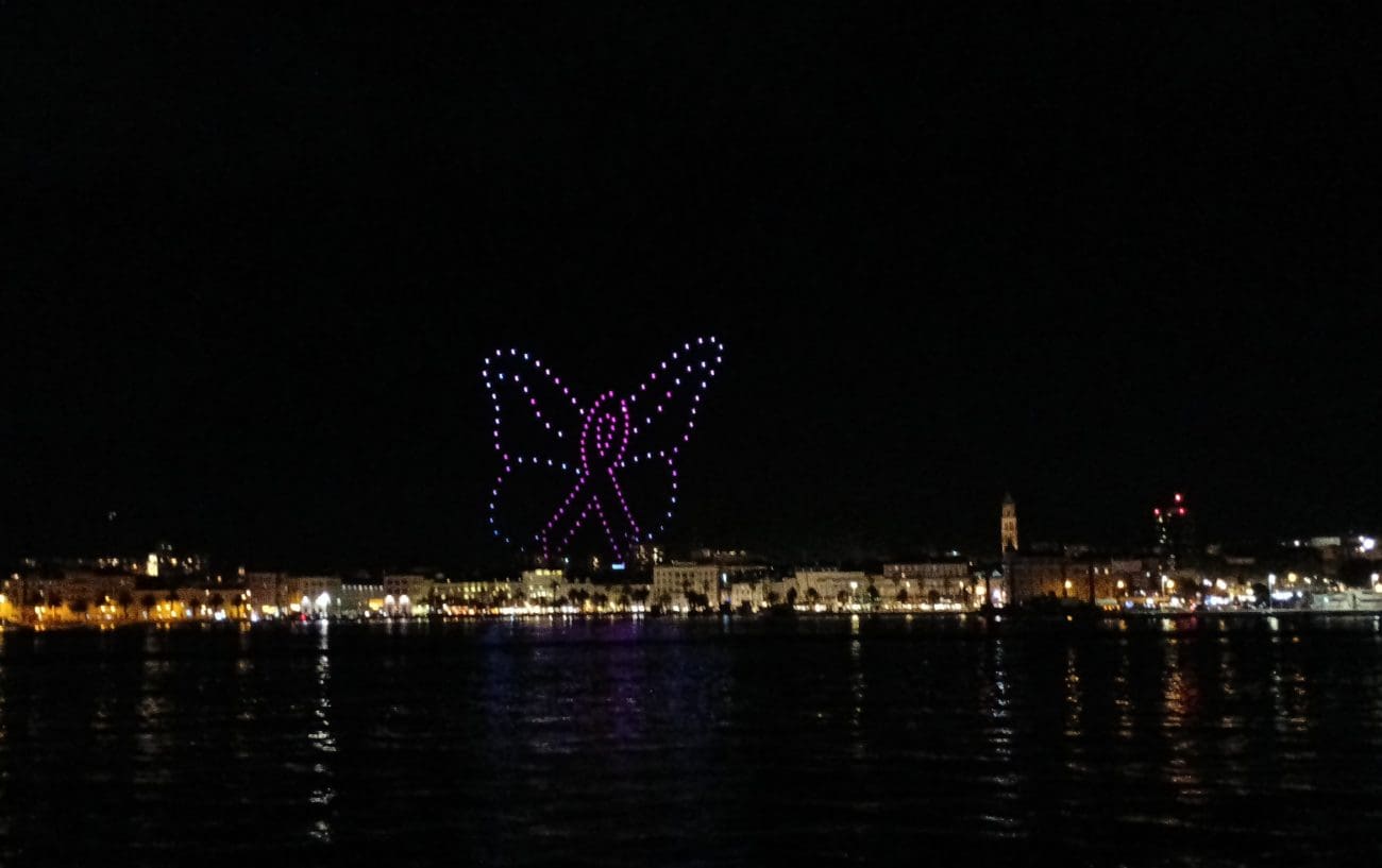 Točno u 20 sati, stotine dronova poletjele su s gata kod Lučke kapetanije i izdigli se iznad mora. Cijela splitska Riva zastala je na deset minuta kako bi svjedočila jedinstvenoj koreografiji nade, zajedništva i podrške ženama oboljelima od karcinoma dojke.