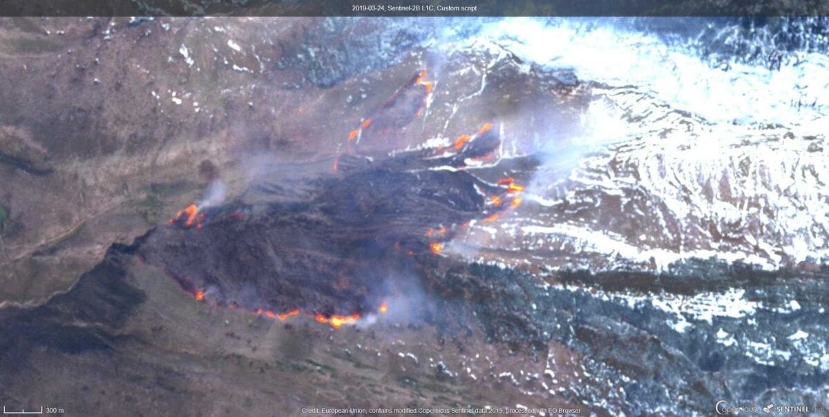 U međuvremenu je Hrvatska udruga kriznog menadžmenta (HUKM) objavila spektakularnu satelitsku snimku požara na Kamešnici koji je svoj vrhunac imao 24. ožujka. Radi se o satelitu Sentinel-2B, europskom optičkom satelitu koji je lansiran 7. ožujka 2017. To je drugi satelit Sentinel-2 koji je pokrenut kao dio programa Copernicus Europske svemirske agencije. Orbita ovog satelita je položena 180° u odnosu na srodni Sentinela-2A. Satelit nosi široki multispektralni uređaj za snimanje fotografija i snimaka visoke rezolucije u 13 spektralnih pojaseva. Njegovi produkti pružaju vrijedne informacije za poljoprivredu i šumarstvo, a među ostalim, njegove snimke mogu pomoći pri boljem predviđanju prinosa usjeva.