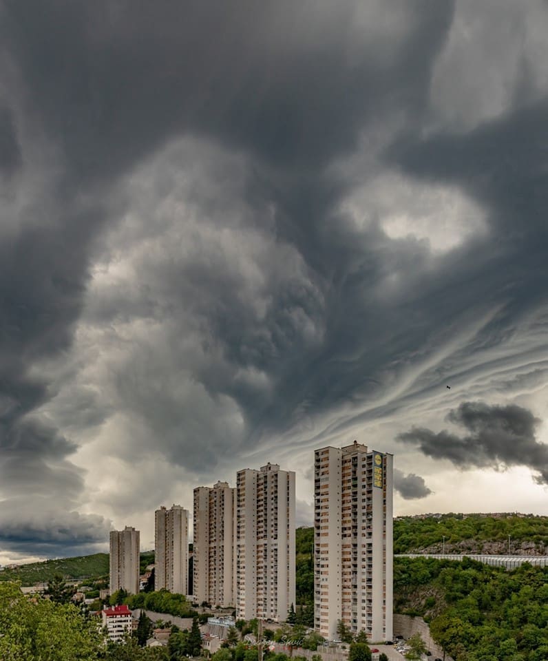 U fotogaleriji pogledajte današnje zanimljive formacije oblaka snimljene iznad Rijeke.