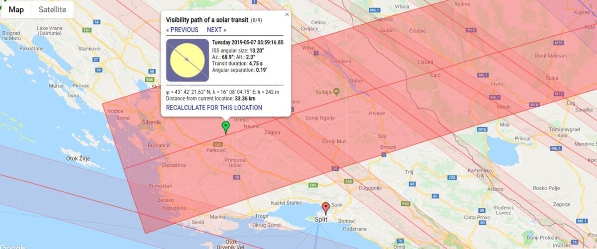 Poznati splitski fotograf i zaljubljenik u astronomske pojave, Eddy Meštrović, snimio je spektakularne fotografije i video tranzicije međunarodne svemirske postaje (eng. International Space Station - ISS) preko Sunčevog diska.