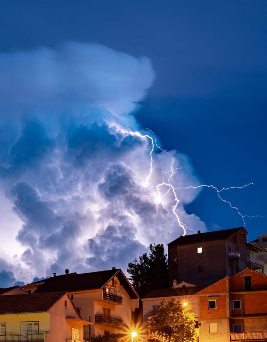 Večernji sati donijeli su pravi nebeski spektakl diljem Dalmacije. Još uvijek toplo more, primjerice u Komiži je izmjereno čak 25 stupnjeva, predstavlja pravo gorivo olujnim sustavima koji se ovih dana formiraju nad Jadranom.