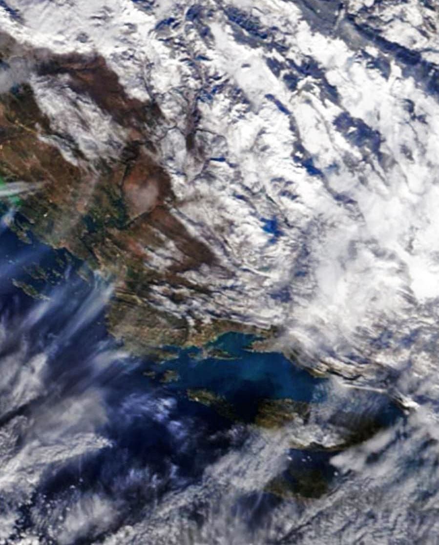 Na satelitskoj snimci naoblake danas se može vidjeti gdje je pao snijeg, a gdje ne, ali samo u područjima gdje je prevladavala vedrina. Južnije od Makarske danas su prevladavali oblaci pa se ne može vidjeti gdje je pao snijeg, ali se zato dobro vide sjeverna i srednja Dalmacija.