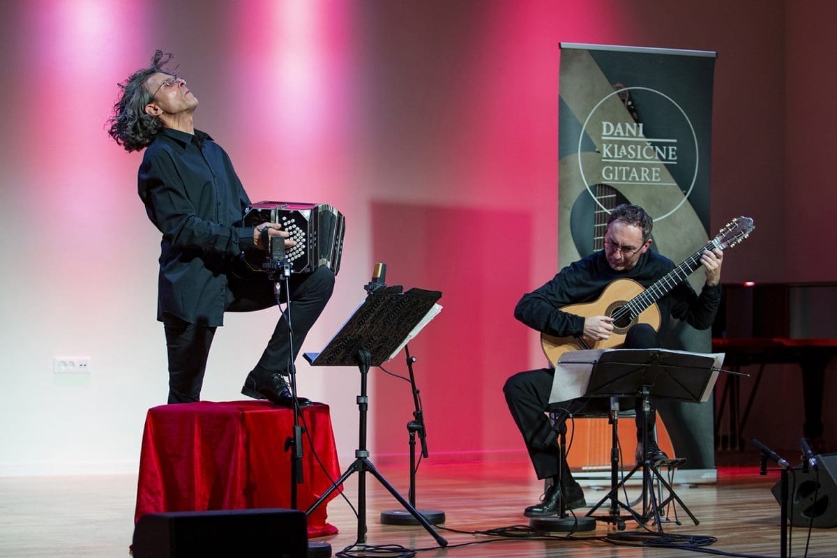 Koncertom „Omaggio ad Astor Piazzolla” talijanskih virutoza Cesarea Chicchiarette na bandeonu i Giampaola Bandinija na gitari završeno je deveto izdanje festivala „Dani klasične gitare“. Radi se o koncertu posvećen argentinskom geniju, kreatoru stila „Tango Nuevo“ čija se 100. obljetnica rođenja slavi ove godine. Svoju reputaciju karizmatičnih glazbenika talijanski duo potvrdio je i u splitskom Hrvatskom domu spektakularnim nastupom.