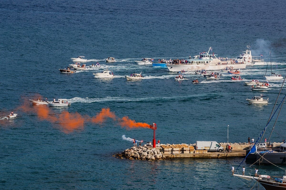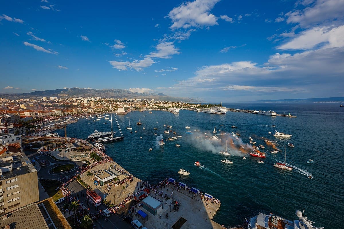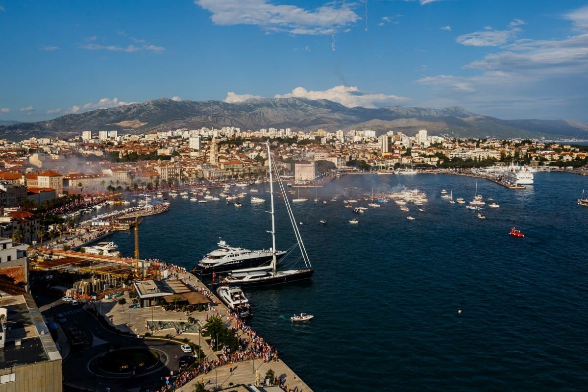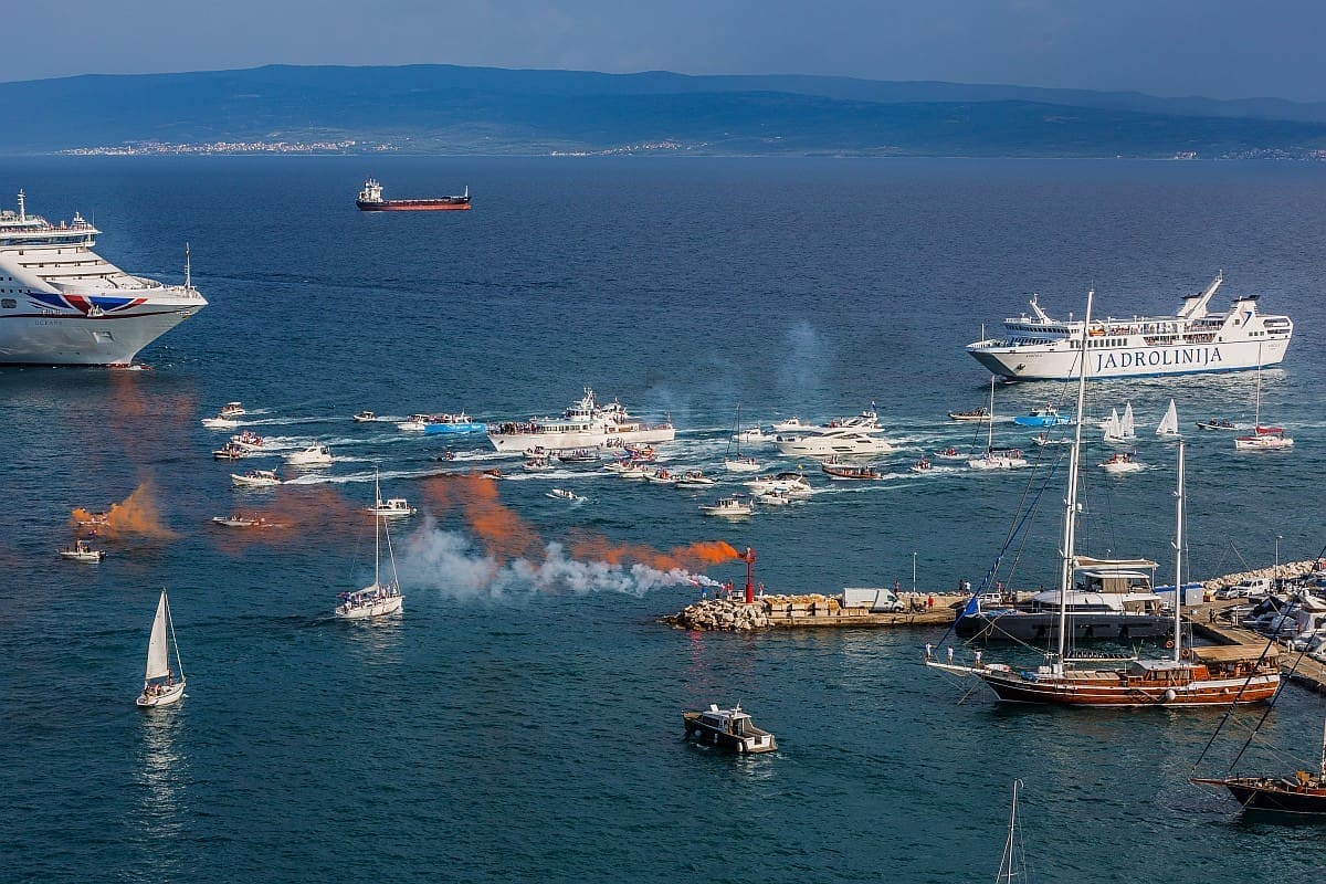 Kada su ušli u gradsku luku uslijedio je trenutak koji će ostati zapisan za povijest. Pratile su ih brojne brodice, oglasile su se brodske sirene, upaljene su brojne bengalke i spektakl je mogao početi.