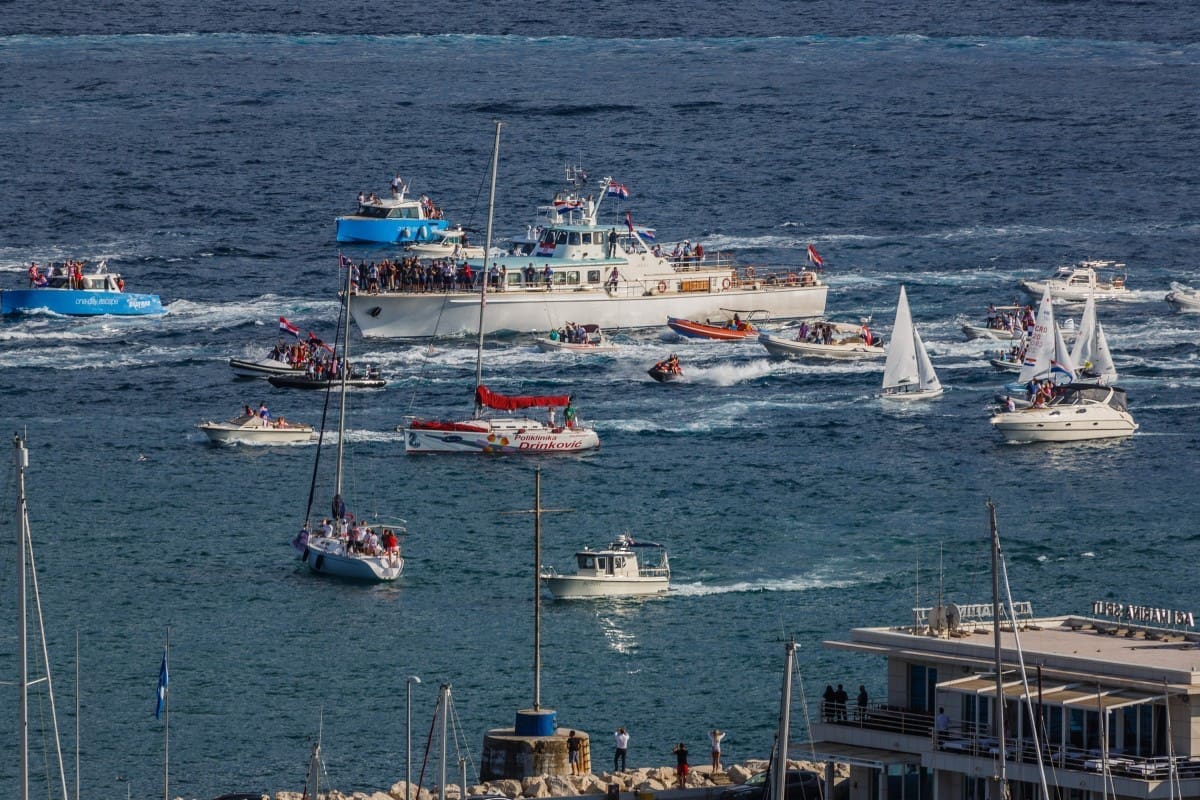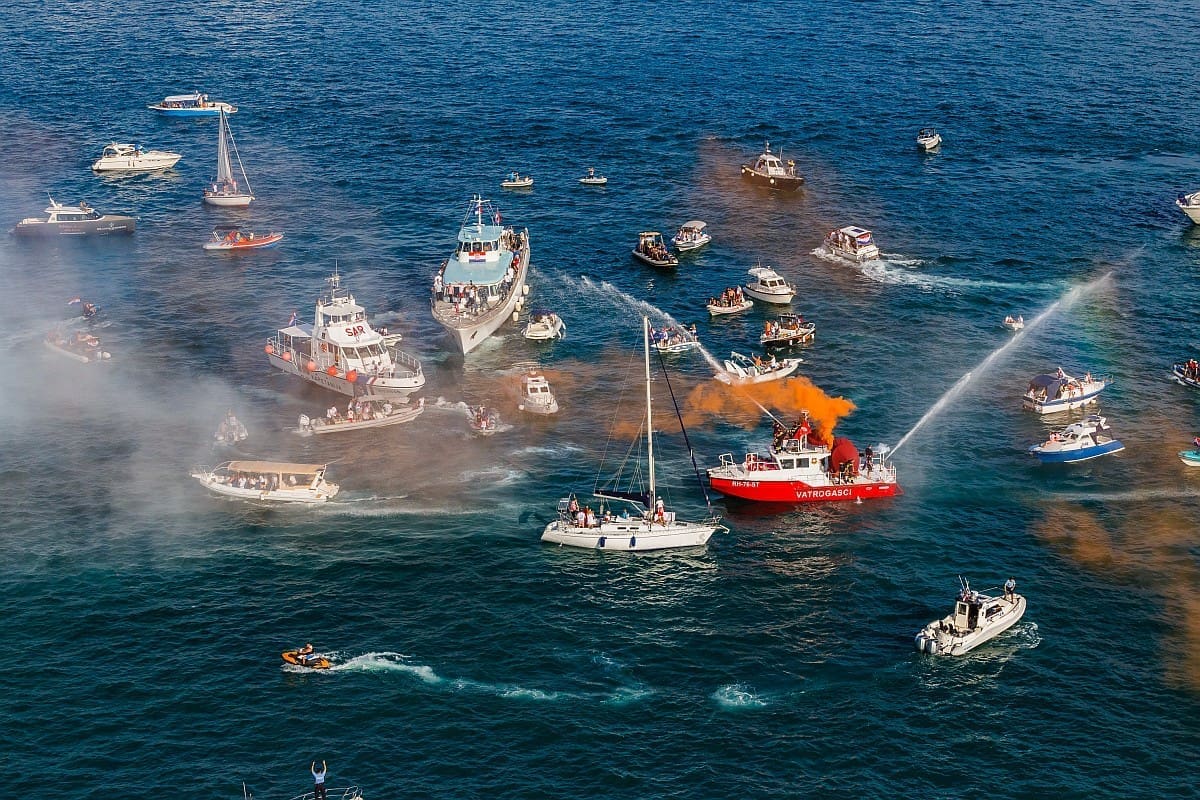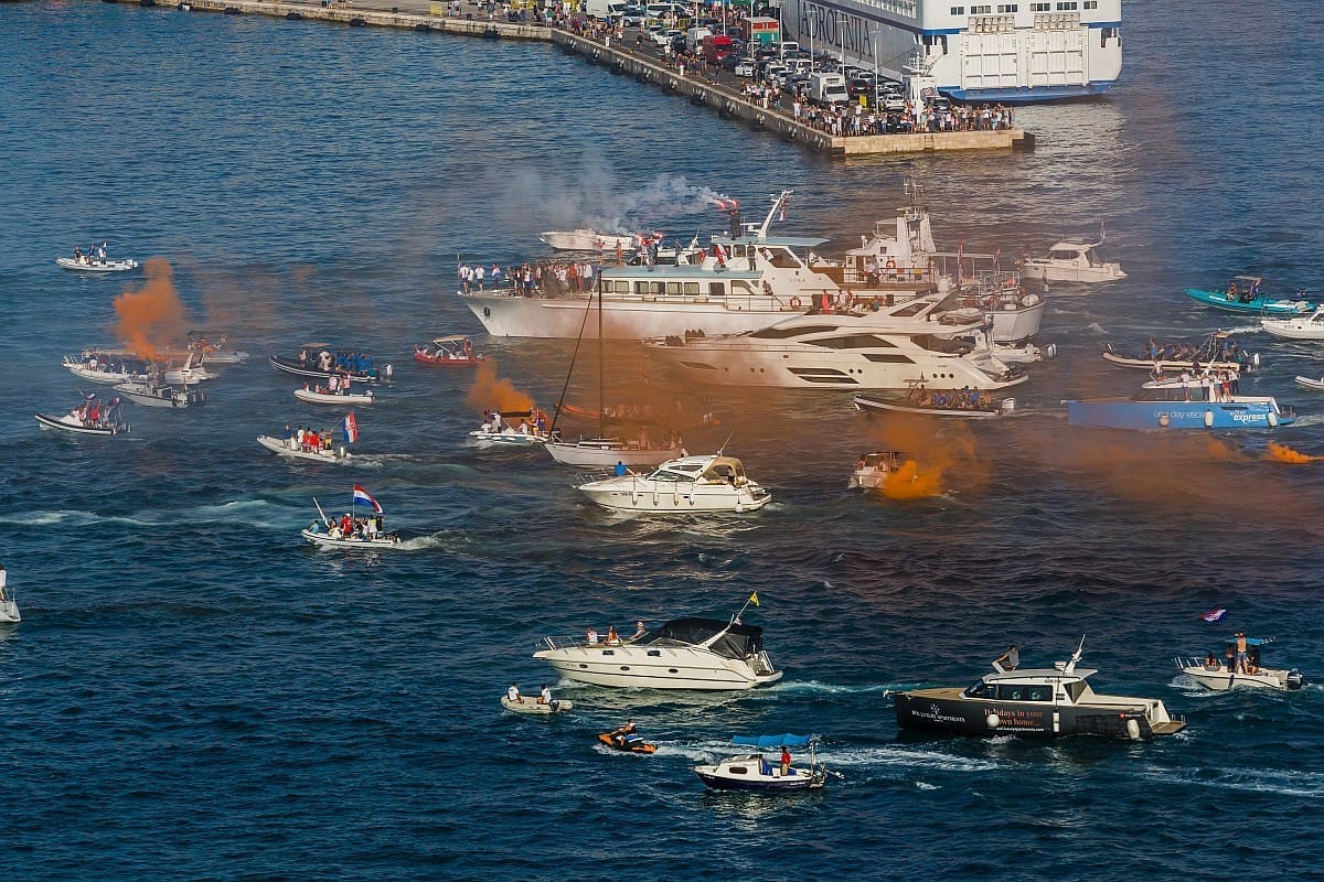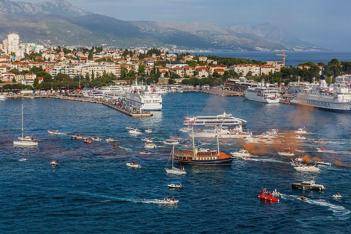 Kada su ušli u gradsku luku uslijedio je trenutak koji će ostati zapisan za povijest. Pratile su ih brojne brodice, oglasile su se brodske sirene, upaljene su brojne bengalke i spektakl je mogao početi.