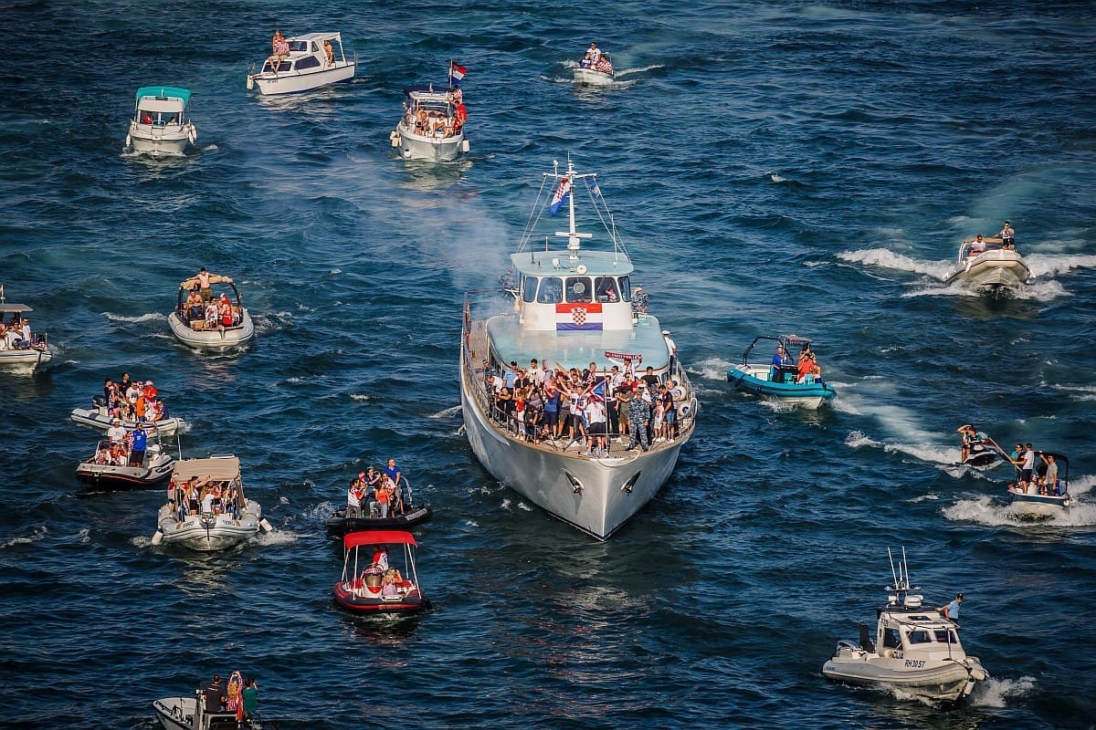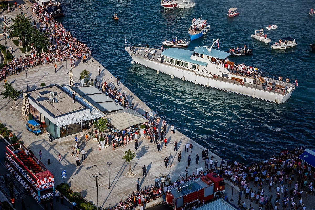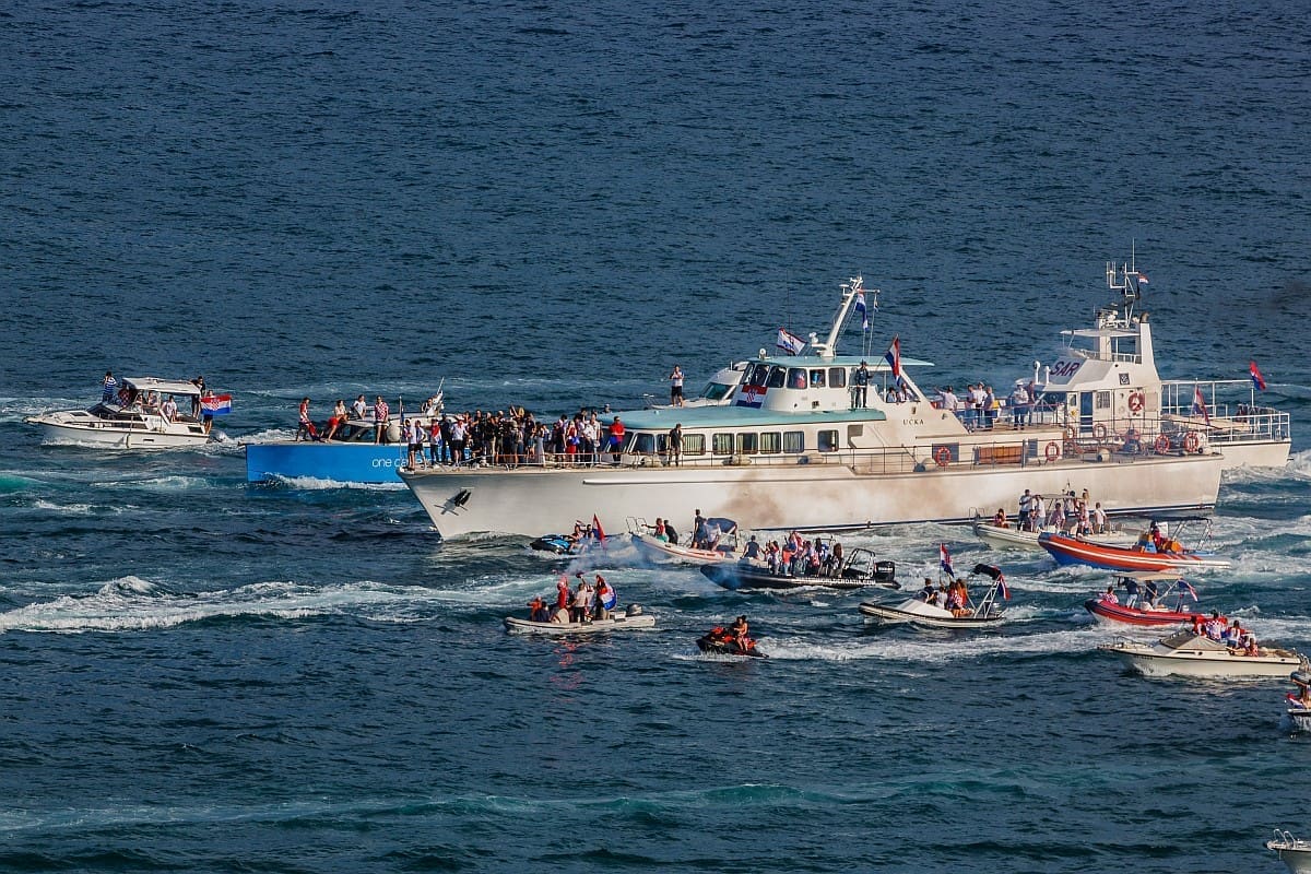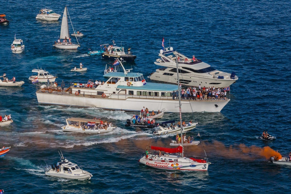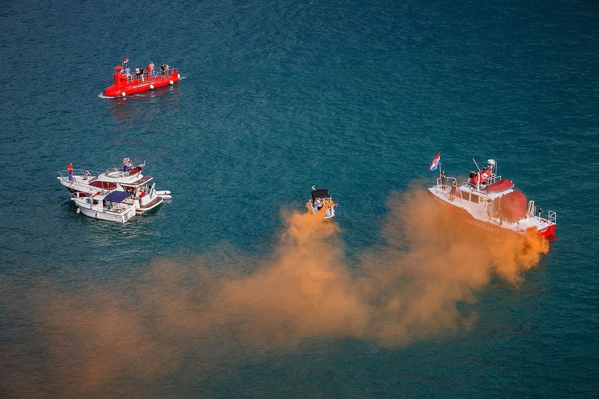 Kako je izgledao dolazak Vatrenih s mora, kao i vožnja od Zapadne obale do Rive u posebno pripremljenom navijačkom autobusu, pogledajte u fotogaleriji splitskog fotografa Zvonimira Barišina...