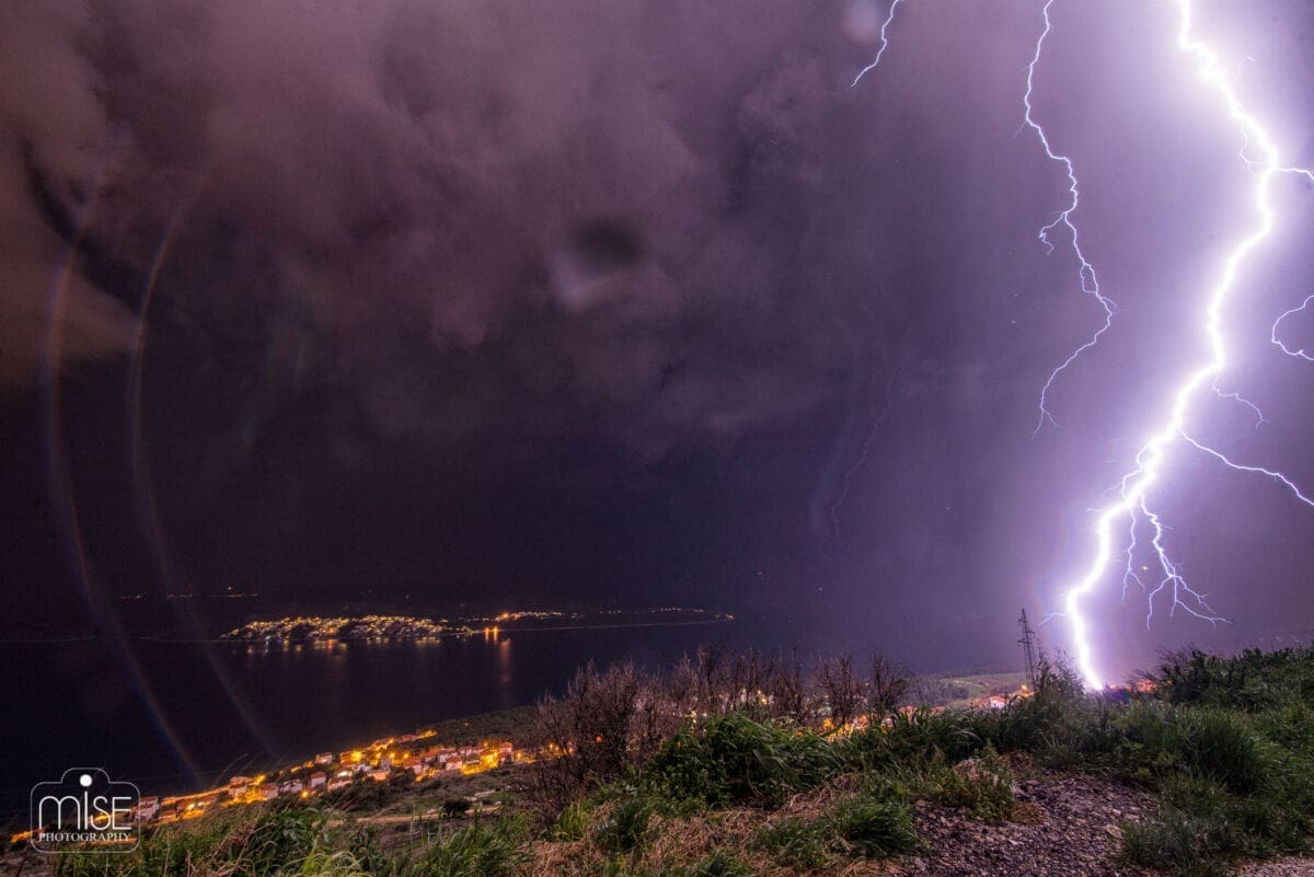 Crometeo lovci na oluje ni ove večeri nisu mirovali. Snimili su munje od Šibenika, preko Hvara do Splita. Nema sumnje, najspektakularniji fotografski ulov postigao je trogirski fotograf Antonio Miše. Snimio je rijetko viđenu fotografiju udara munje na manje od 30 metara udaljenosti zračne linije.