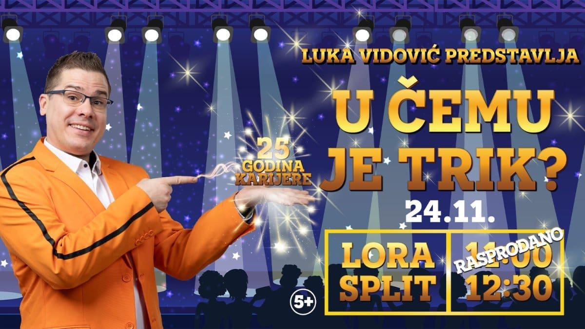 Mali i veliki ljubitelji magije uživat će u iluzionističkom spektaklu kojeg naš najpoznatiji mađioničar Luka Vidović priređuje u splitskoj dvorani Lora u nedjelju 24. studenog. Svoju nadaleko poznatu predstavu „U čemu je trik?“ s kojom je proputovao cijelu Hrvatsku i oduševio tisuće djece, osvježio je novim fenomenalnim trikovima te jedva čeka stati na pozornicu grada za kojeg ga vežu predivne uspomene: