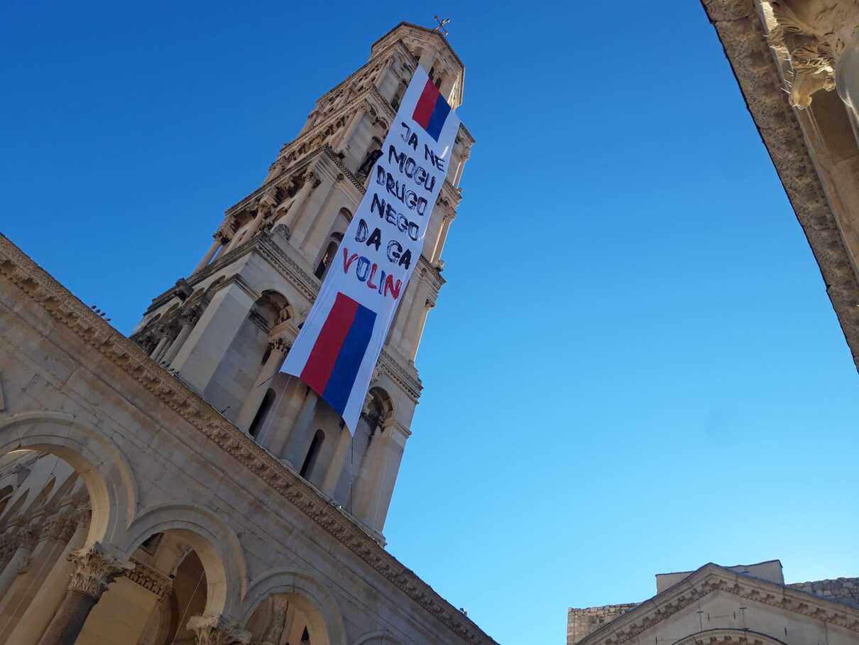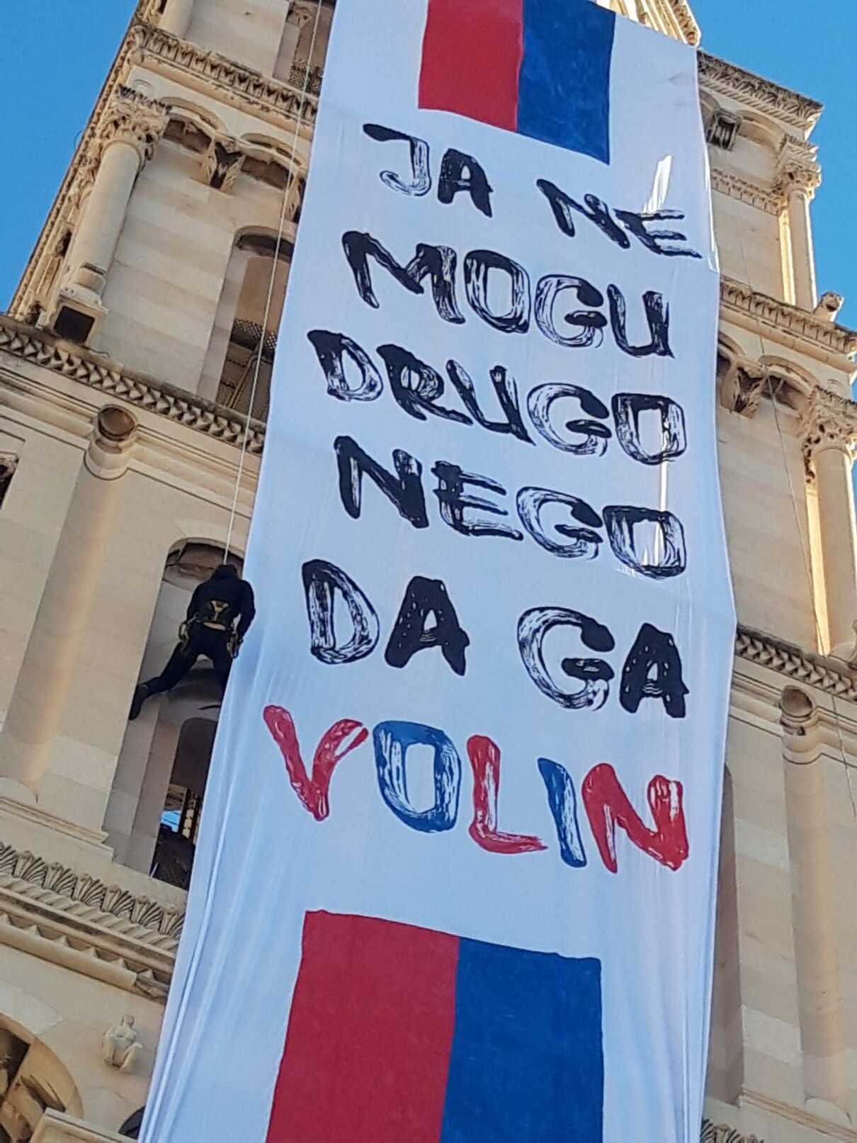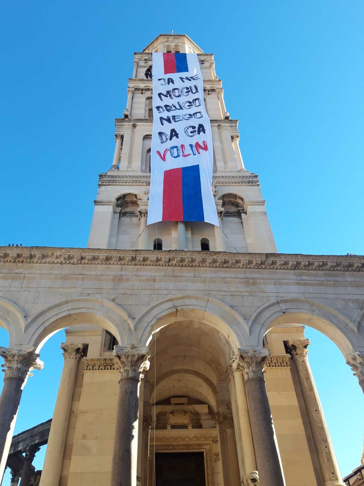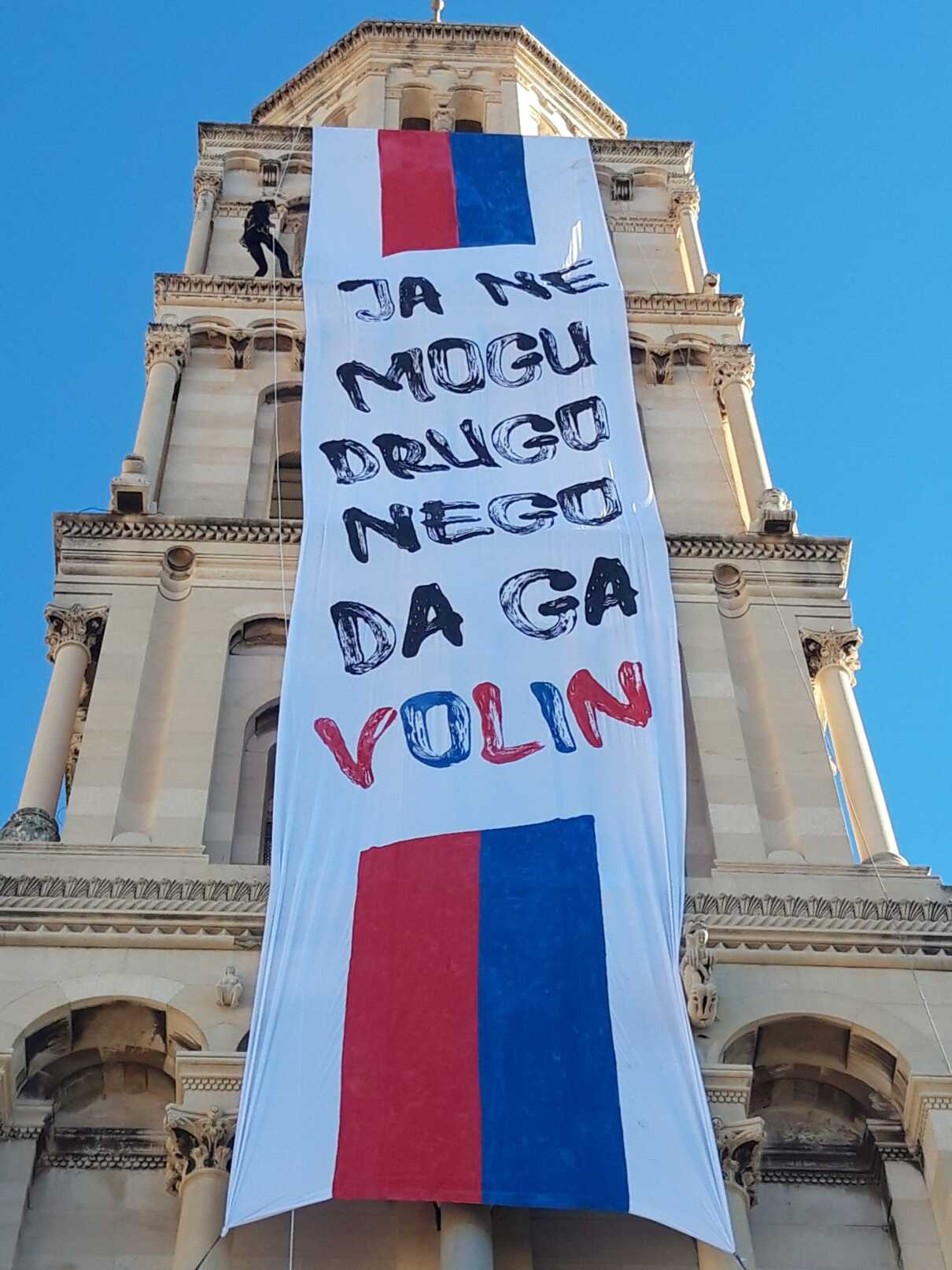Točno u podne na zvoniku Svetog Duje osvanula je poruka "Ja ne mogu drugo nego da ga volin".