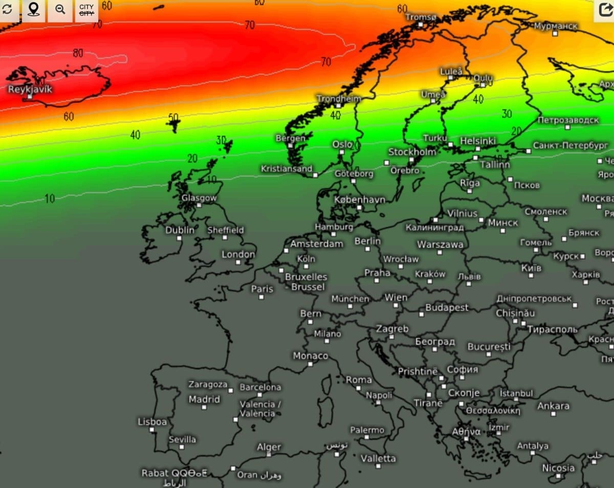 Aurora borealis, poznata kao sjeverna svjetlost, u srijedu navečer bila je vidljiva iznad sjeverne i srednje Europe, no pojava se mogla povremeno vidjeti sve do Sredozemlja. Ova pojava je rezultat pojačane solarne aktivnosti koja je dovela do geomagnetske oluje, omogućujući da se aurora proširi dalje prema jugu nego što je uobičajeno. KP index povremeno je prelazio 7, što predstavlja visoku vrijednost.