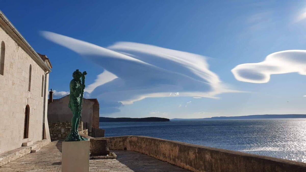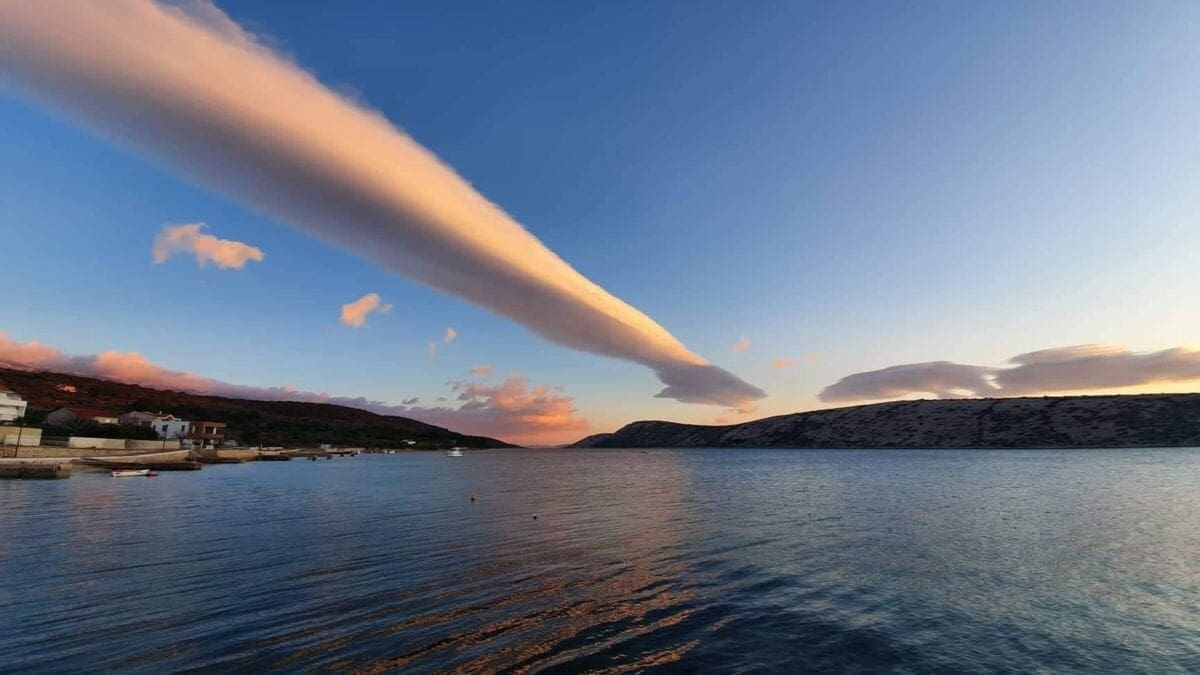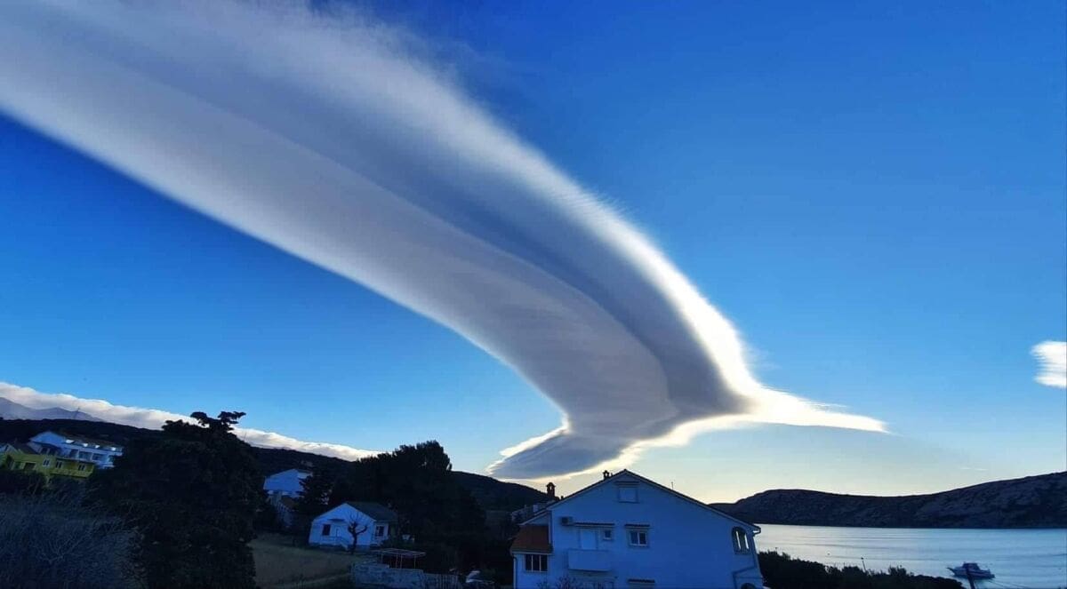 Kod snažnih visinskih vjetra, nije rijedak slučaj da se u zavjetrini Dinarida stvore zanimljive formacije oblaka. Radi se o "altokumulus lentikularis" oblacima karakterističnim za naše priobalje za vrijeme puhanja snažne bure. Ovi oblaci danas su bili najzastupljeniji iznad velebitskog priobalja.