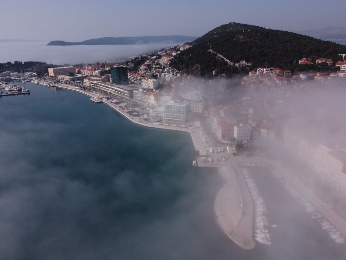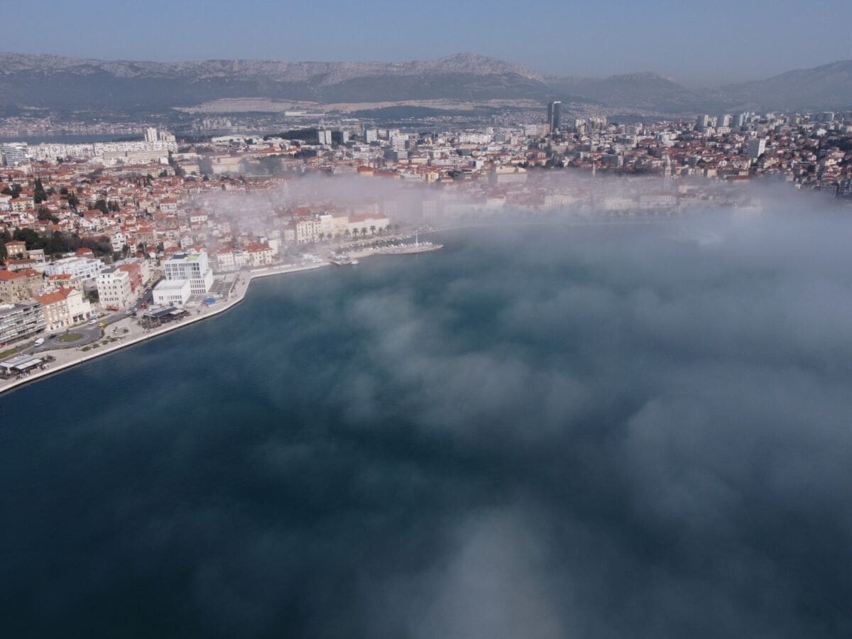 Magla u Splitu je iznimno rijetka i dogodi se u prosjeku manje od jednom godišnje. Ne čudi cijela ova situacija, zbog toga što je more još uvijek relativno hladno, a temperatura zraka je izuzetno visoka za ovo vrijeme godine.