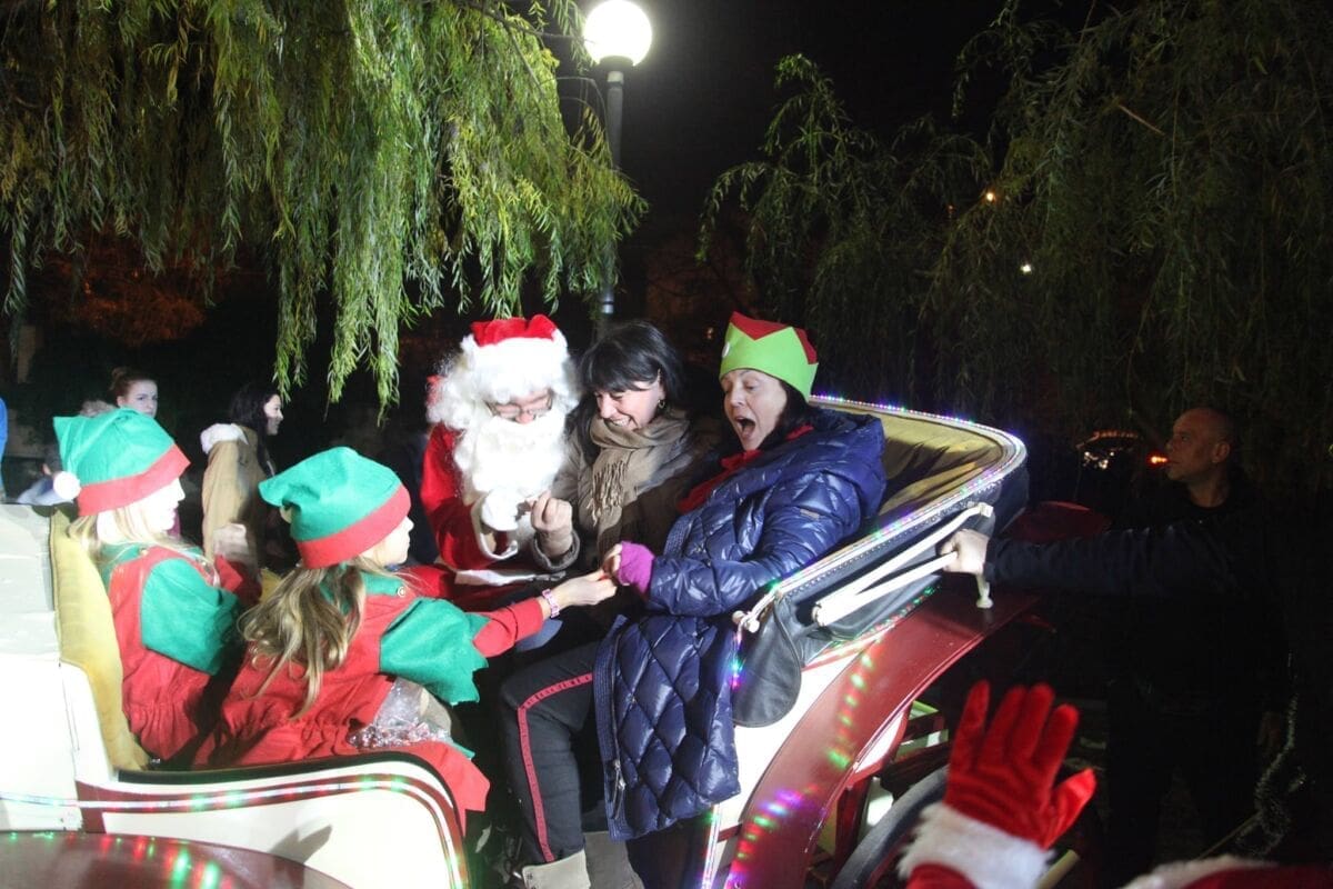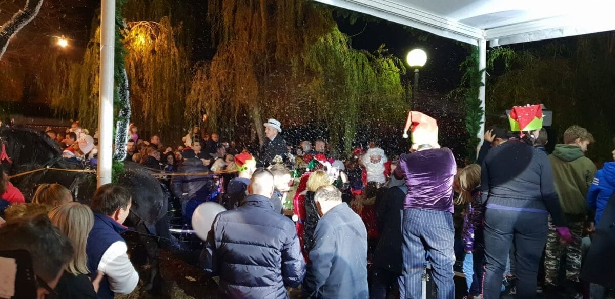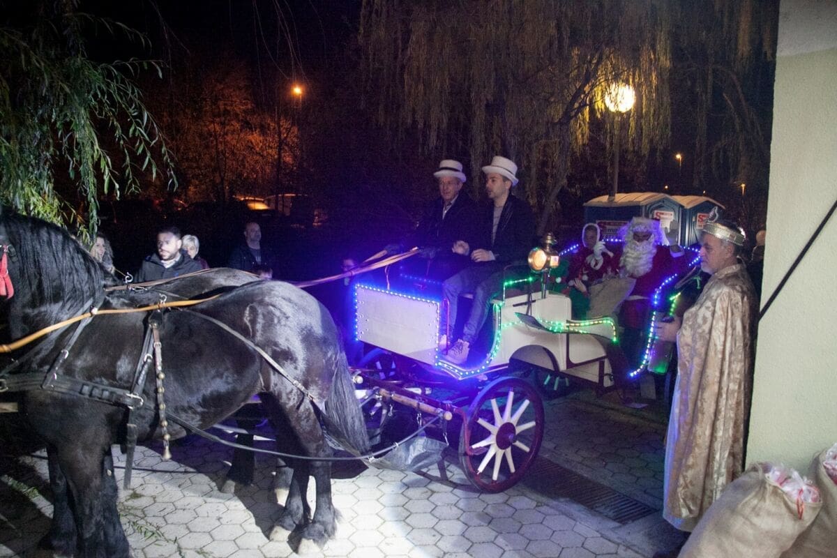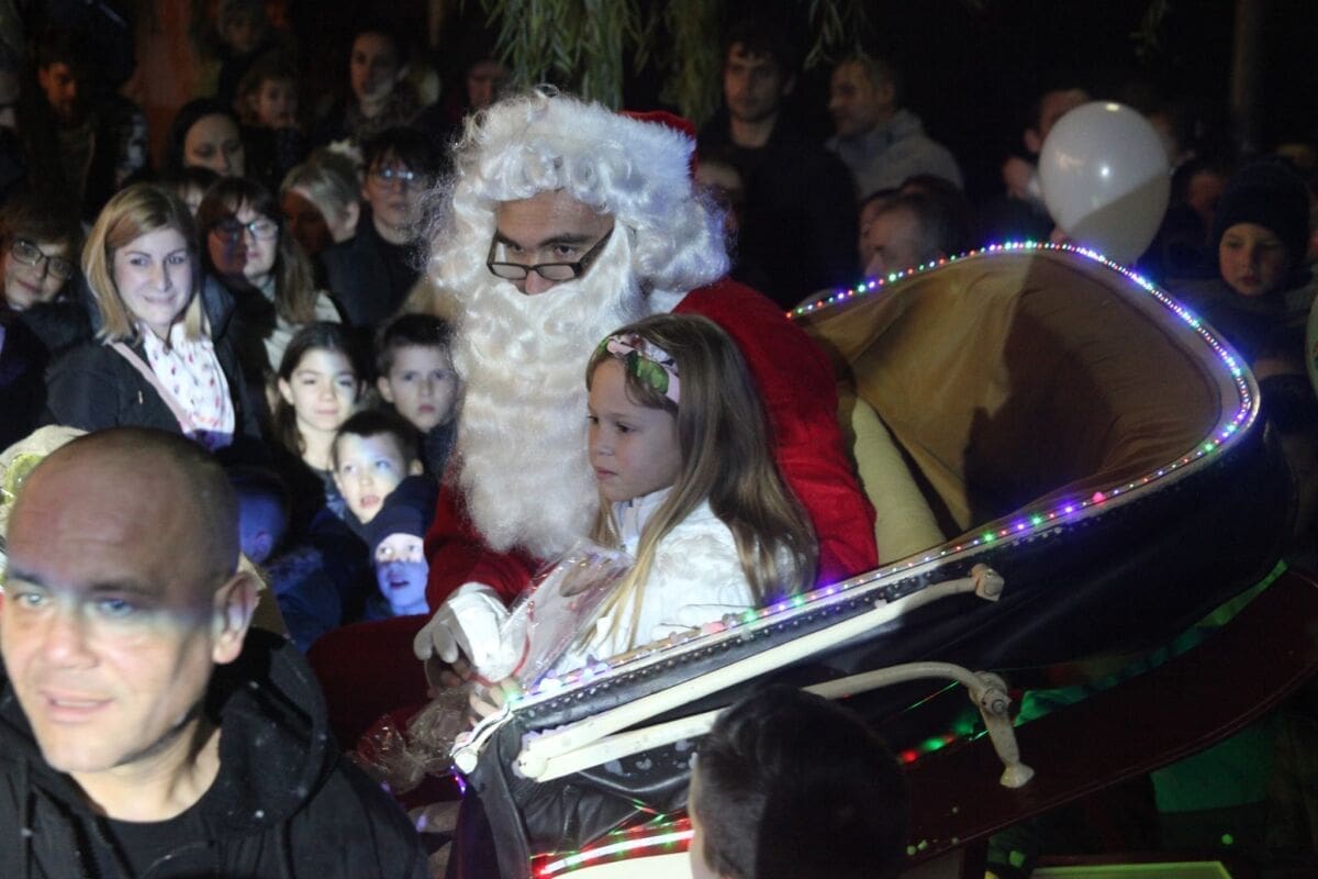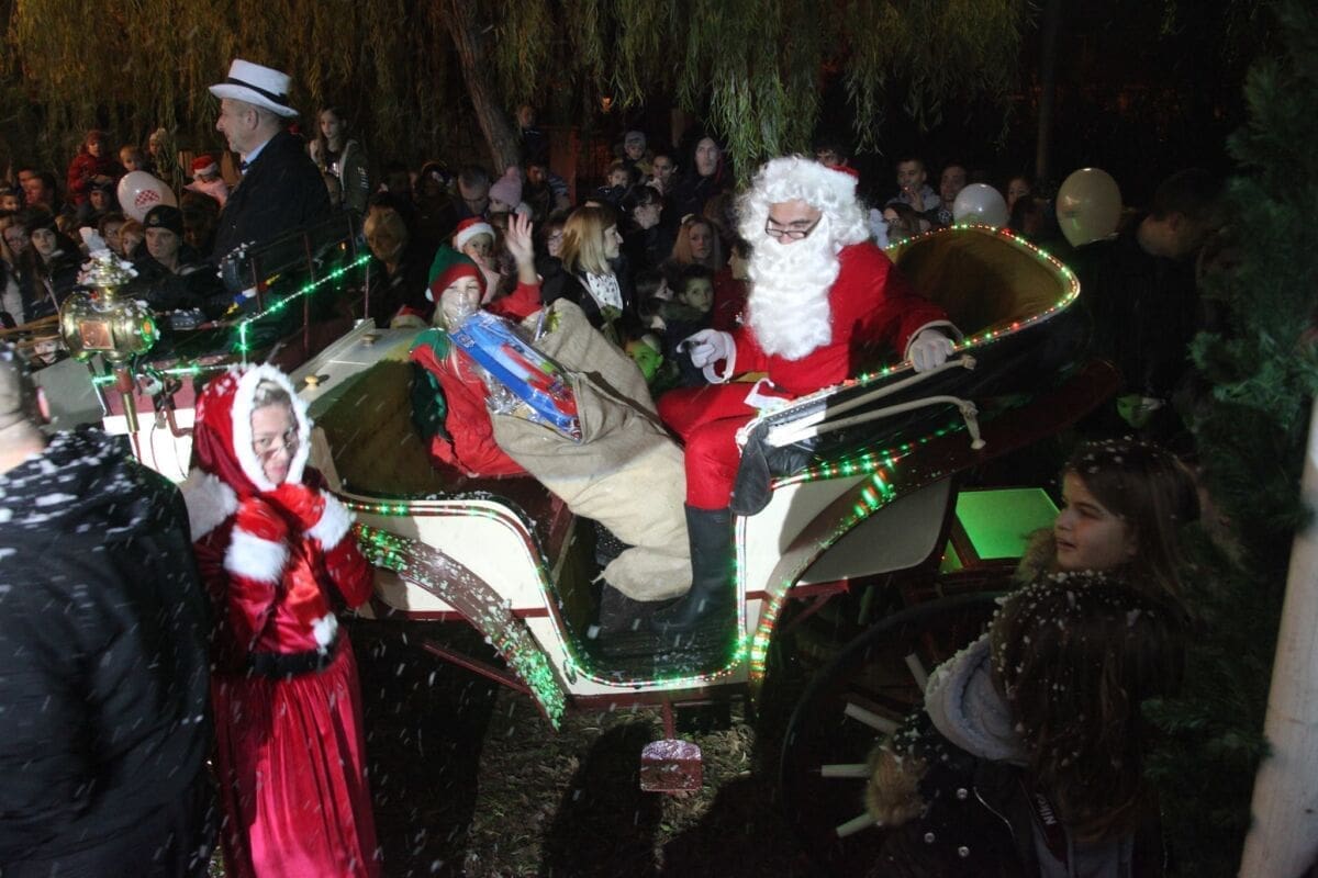 Oduševljenju nije bilo kraja kada je kočija ušla u baštu, a onda je počela podjela darova djeci koja su jedno po jedno sjela na kočiju uz Djeda i Baku Božićnjak. Cijelu atmosferu dodatno je čarobnom učinilo padanje umjetnog snijega.