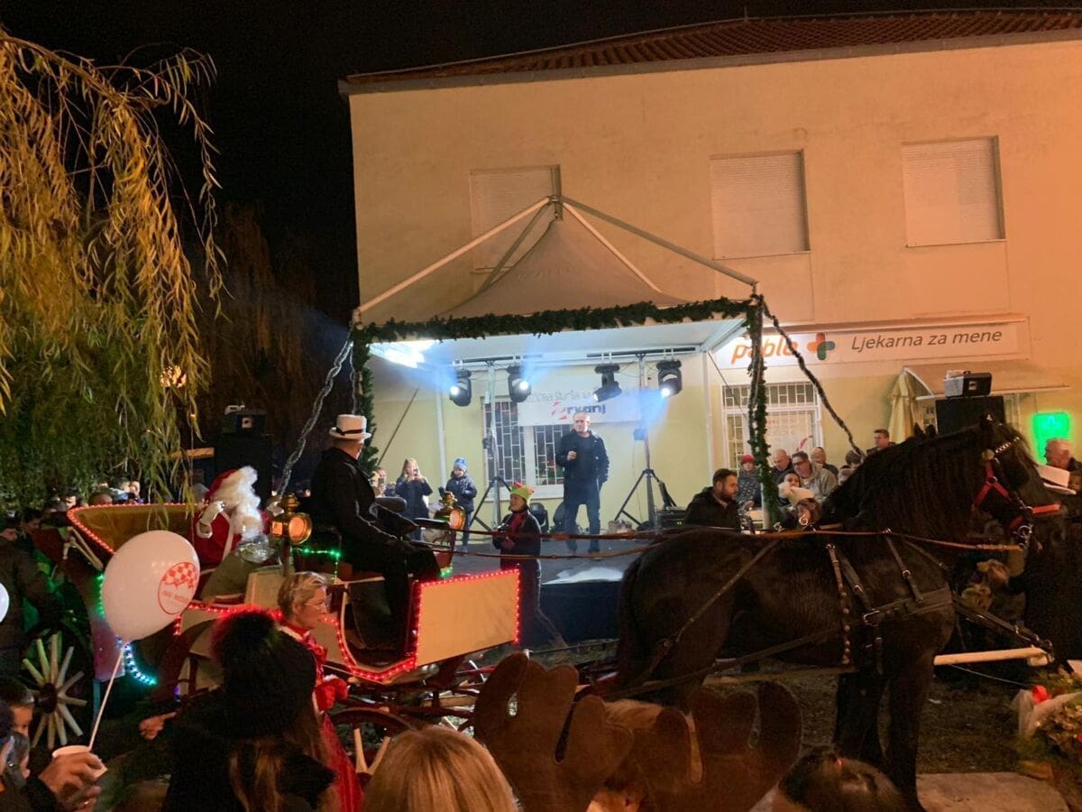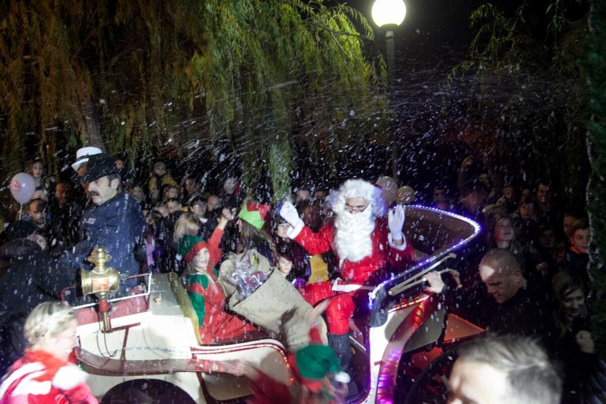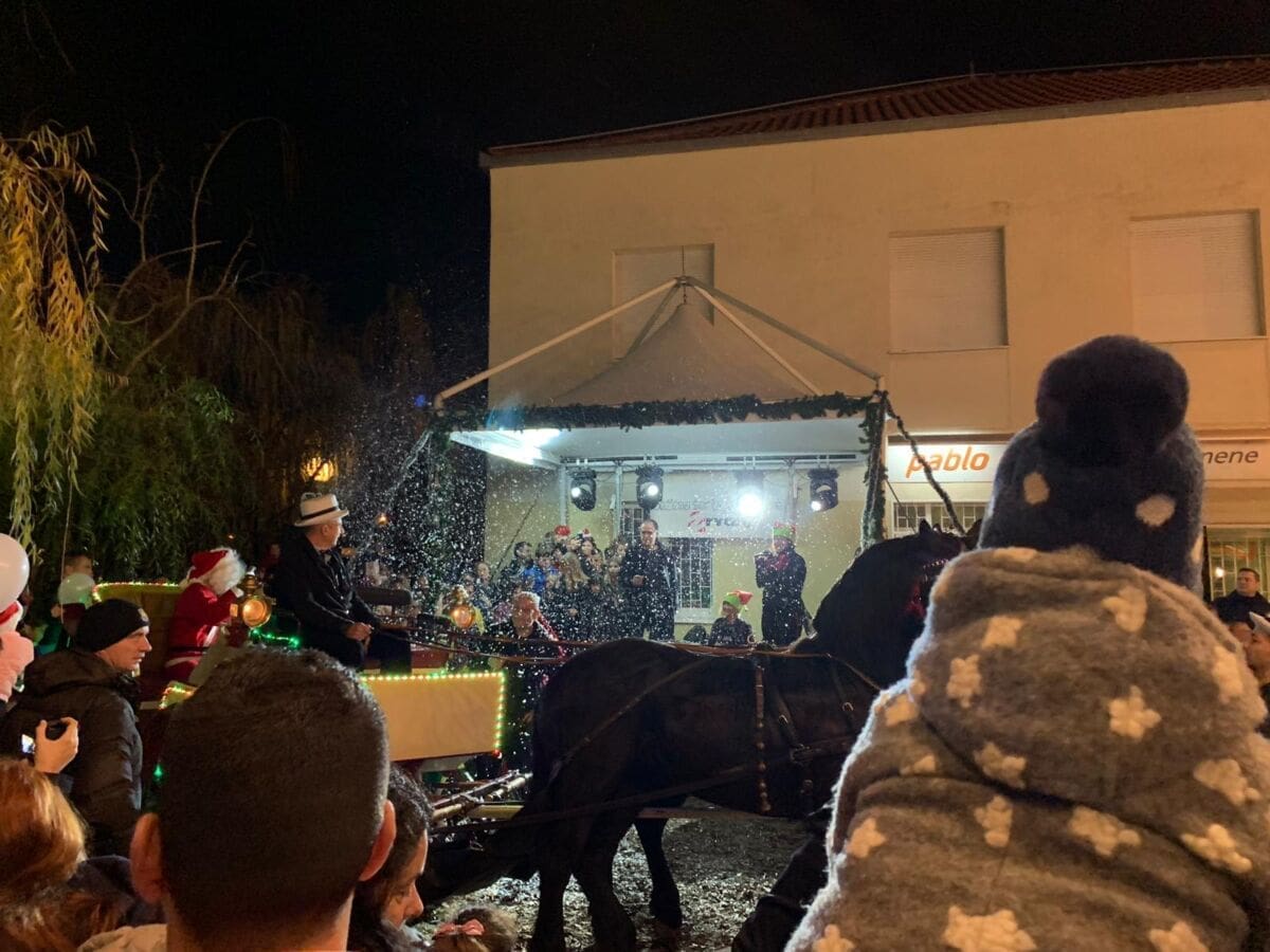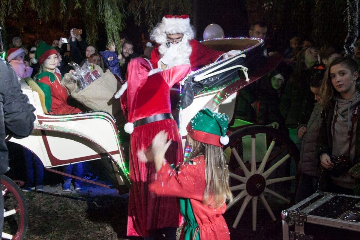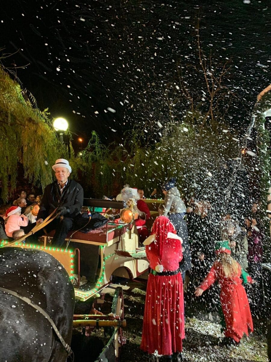 Oduševljenju nije bilo kraja kada je kočija ušla u baštu, a onda je počela podjela darova djeci koja su jedno po jedno sjela na kočiju uz Djeda i Baku Božićnjak. Cijelu atmosferu dodatno je čarobnom učinilo padanje umjetnog snijega.