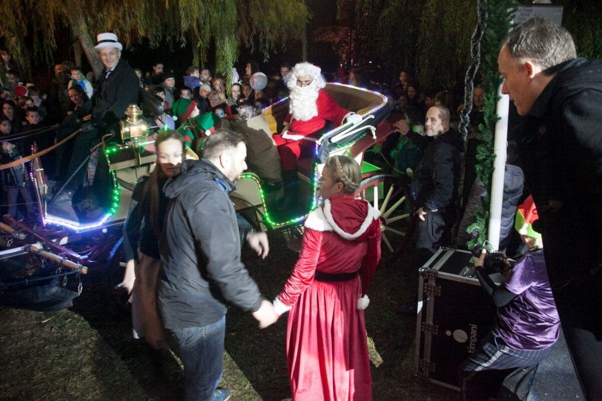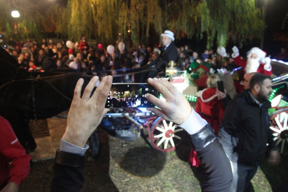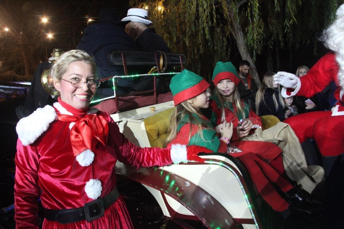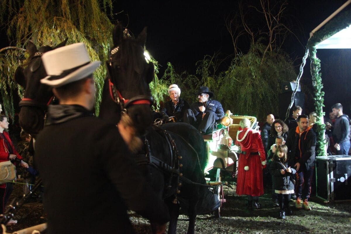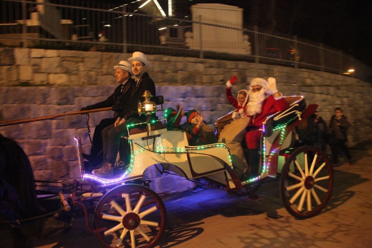 Oduševljenju nije bilo kraja kada je kočija ušla u baštu, a onda je počela podjela darova djeci koja su jedno po jedno sjela na kočiju uz Djeda i Baku Božićnjak. Cijelu atmosferu dodatno je čarobnom učinilo padanje umjetnog snijega.