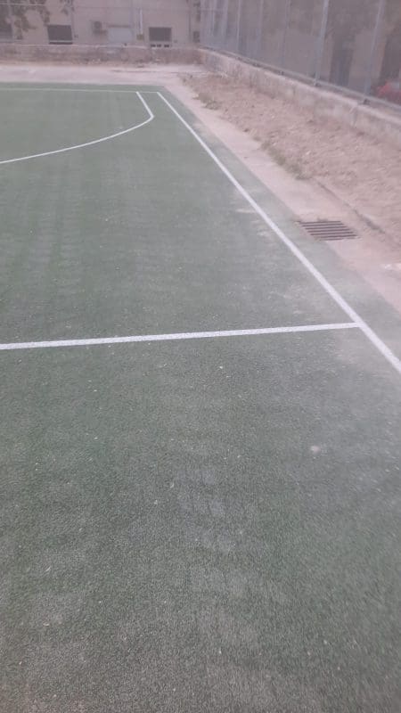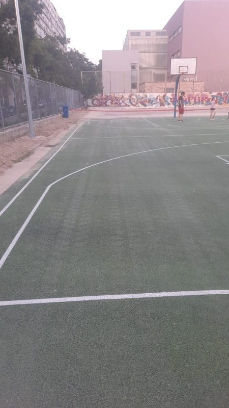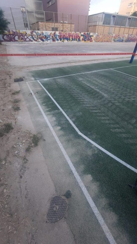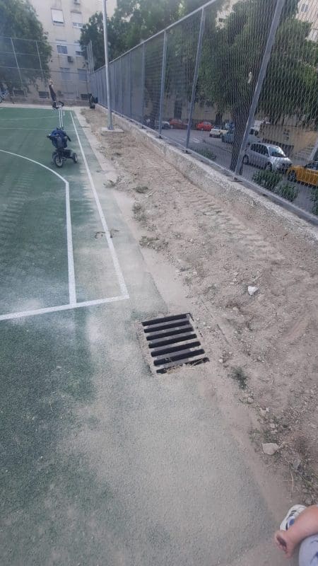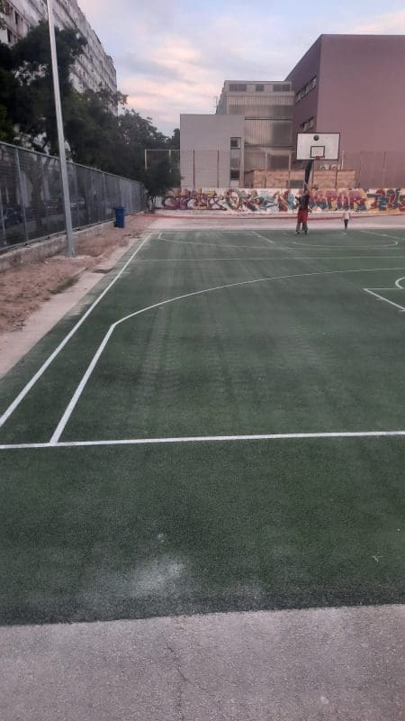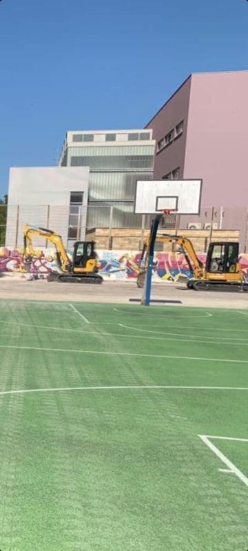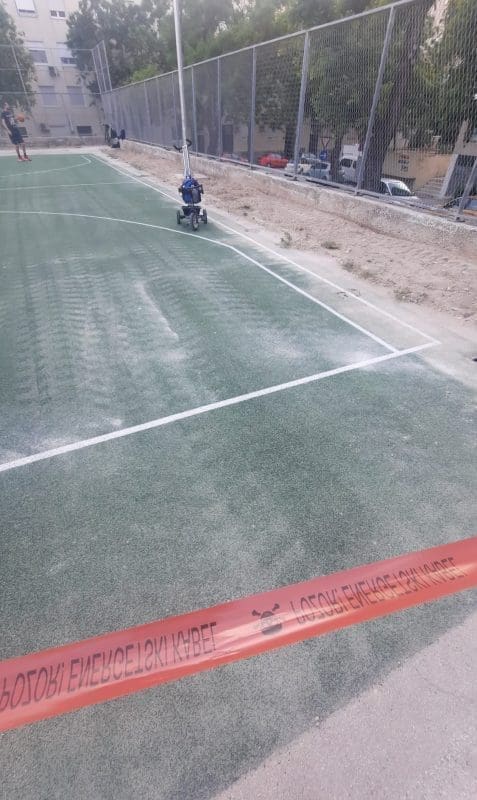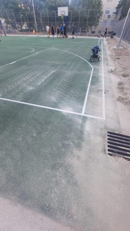 Na igralištu danas mehanizacije nema. Oštećenja su prilično dobro sanirana, cijela gumena podloga je ofregana od tragova vožnje bagera, a košarkaši su nakon ukopavanja električnih vodova dobili dva stupa s reflektorima koja pokrivaju četiri koša.