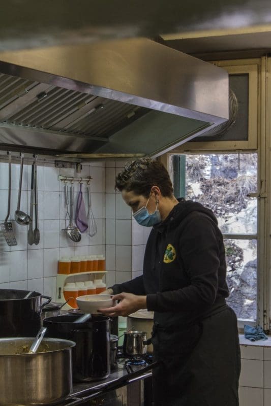 U kuhinji kao i u drugim poslovima u domu, Špiro ima veliku pomoć svoje obitelji. Tu se osobito ističe njegova kćerka Josipa Maroš i njegov unuk Matej Maroš. Uz vrijedne ruke prijatelja Ivice Mogića - Čile i Josipinog supruga Ante Maroša, svi planinari su još jednom mogli uživati u toplini doma i ukusnoj planinskoj spizi.