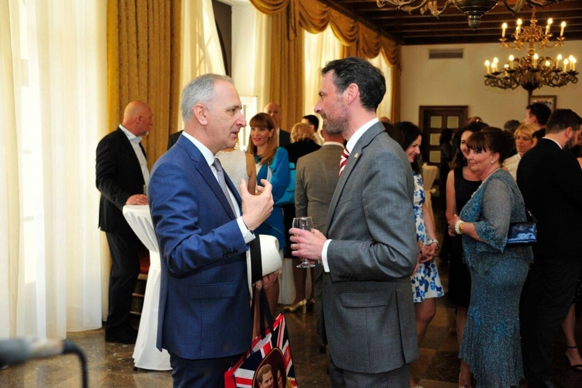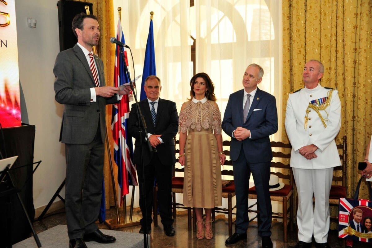 Povodom kraljevskog vjenčanja princa Harryja i Meghan Markle Veleposlanik Ujedinjene Kraljevine Velike Britanije i Sj. Irske u Republici Hrvatskoj Andrew Dalgleish upriličio je svečani prijem u Vili Dalmaciji.