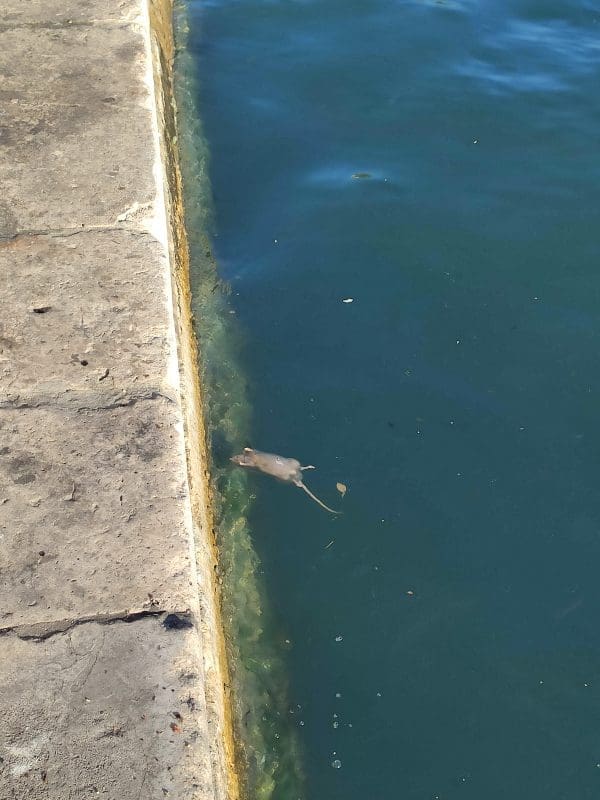Nije ovo rijedak prizor na splitskoj Rivi. Često leševi mrtvih životinja, osobito štakora i miševa 'isplivaju' na površinu ispred obale na najpoznatijoj šetnici u gradu podno Marjana. Grozan je to prizor koji nerijetko ljuti i zgražava Splićane, ali i turiste koji pješače uz Rivu.