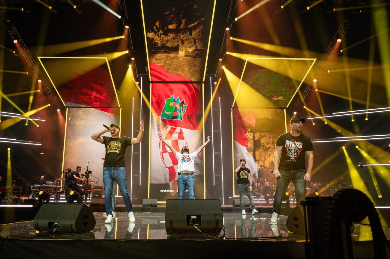 Miroslav Škoro, Mate Bulić i Josip Ivančić predvodili su glazbeni spektakl, izvevši neke od svojih najvećih hitova, među kojima su „Sude mi“, „Ne dirajte mi ravnicu“, „Moja Hercegovina“ i „Na kamenu rođen“ - uz tisuće zapaljenih svjetala i glasove generacija koji su doslovno „grmili“ Arenom – posebno nakon što je Škoro posvetio svoj nastup, među ostalim, hrvatskim braniteljima te svima onima koji više nisu s nama.