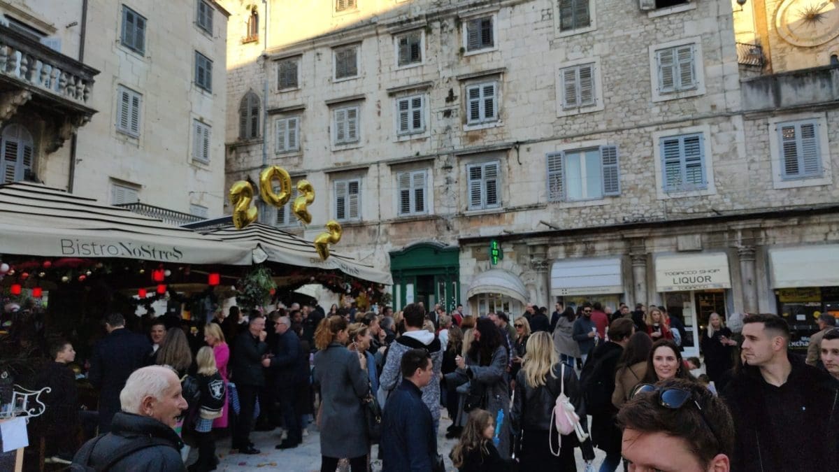 Splićani su se i ove godine u velikom broju okupili na Pjaci gdje su se, već tradicionalno, pozdravili s godinom na izmaku. Gužva nije bila tolika kao prijašnjih godina, ali dobrog raspoloženja nije nedostajalo.