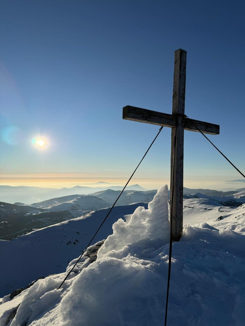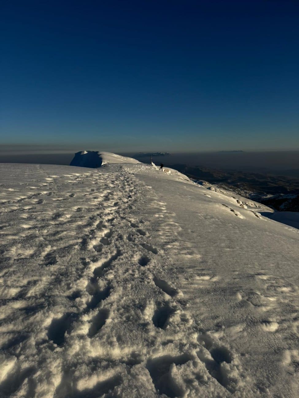 Na najviši vrh Dinare, Troglav (1.913 m), stigli su oko 17 sati. Sav napor isplatio se pogledom koji se s vrha pruža u svim smjerovima. Snježni pokrivač dao je prizoru posebnu čar – nepregledne livade pod bijelim pokrivačem i daljine koje oduzimaju dah.