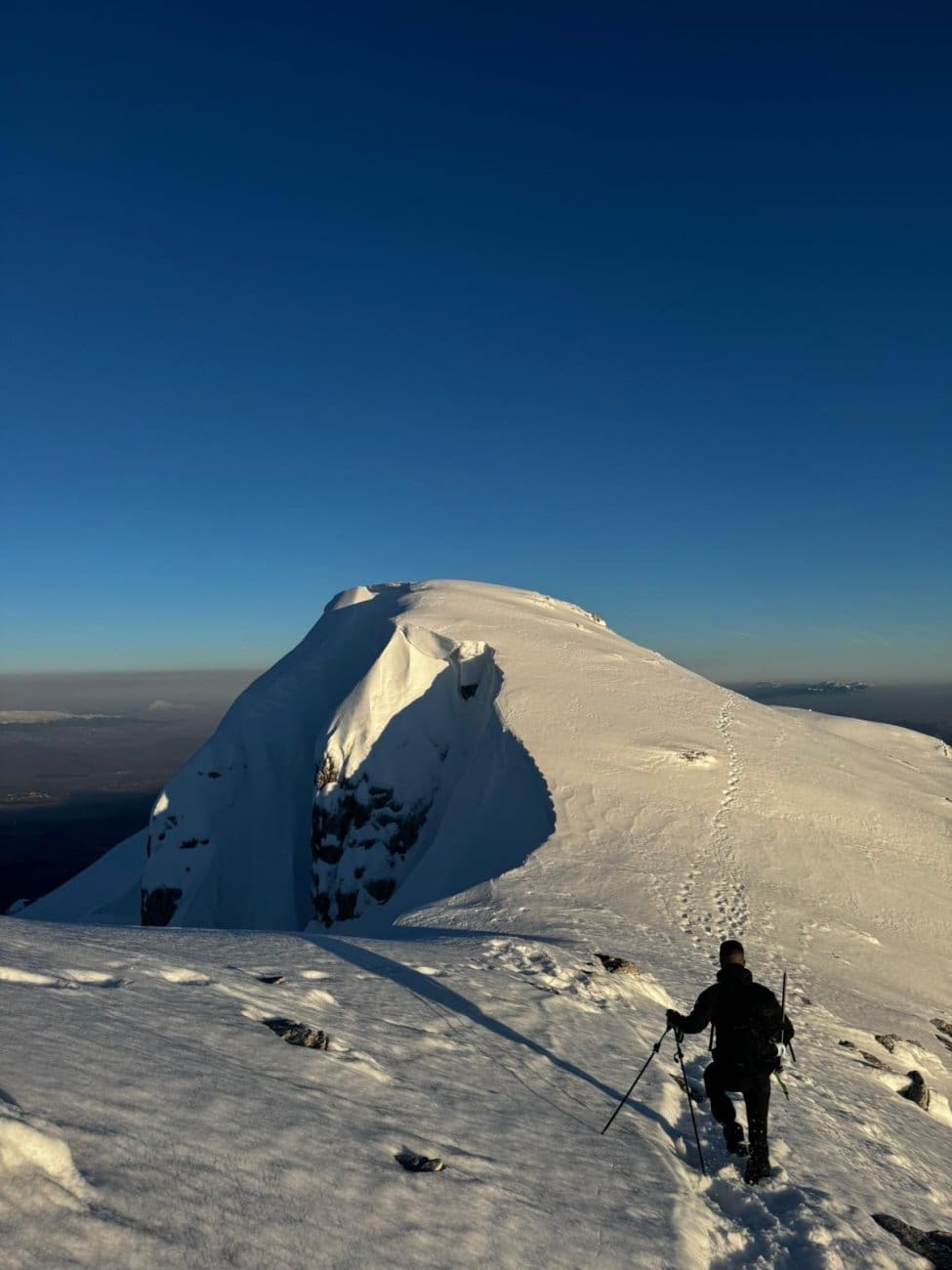 Posljednja dva kilometra markacije su bile potpuno zametene. Na pojedinim mjestima snježni pokrivač bio je dubok i više metara, a sa svakim su korakom propadali do koljena. Do vrha su se probijali isključivo uz pomoć GPS traga i karata.
