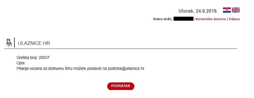 - Danas sam za obitelj išao online kupiti 4 ulaznice. Informatički sam potkovan, a više od 2 i pol sata nisam uspio ništa kupiti. Prvo sam pokušao kupiti 4, pa ih nije bilo u nizu, pa sam pokušao kupiti 3, pa 2, pa samo jednu. No na desetke puta mi je izbacivalo "error" i u konačnici sam odustao. Greška koja se javlja kad završim kupovinu i odaberem samo jednu kartu za sebe - kaže naš čitatelj.