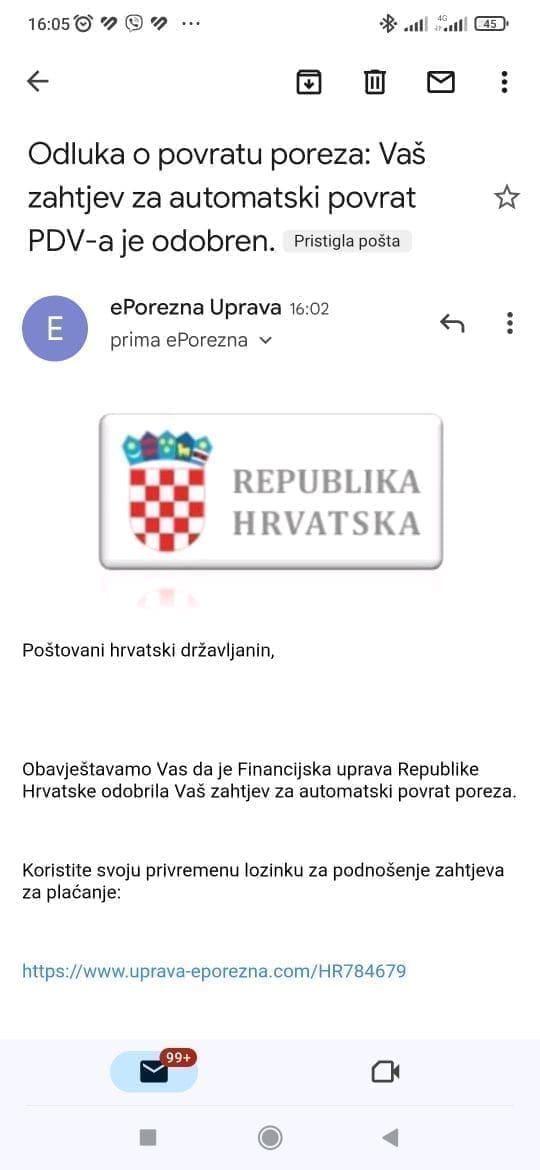 Zadnji takav slučaj je pokušaj prijevare kod navodnog povrata poreza.