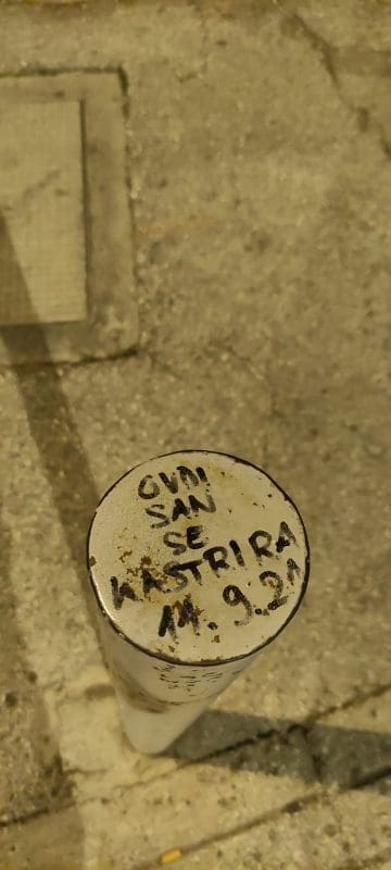Netko je na vrhu stupića napisao: "Ovdi san se kastrira" i uz natpis je ostavio i datum njegove (očite) "kastracije" na ovom stupiću.