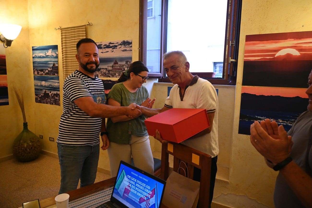 – Još od djetinjstva gledao sam vrhove Apenina s Mosora te sam ih, s prvom opremom, počeo snimati. Uvijek sam sanjao da jednom odem na Gargano ili Corno Grande, a posljednju godinu dana to mi se ostvarilo. Što se tiče izložbe, sve je krenulo Pasqualeovom fotografijom naših planina i otoka koju je snimio iz svog Vica del Gargana. Upoznali smo se prvo virtualno, potom i uživo, nakon čega je ova izložba bila logičan slijed. Izložba nosi naziv koji je itekako shvatljiv moliškim Hrvatima i svi koji smo došli presretni smo što smo je uspjeli realizirati baš ovdje – kazao je Popadić, zahvalivši Vesni Sammartino, tajnici zaklade Agostina Piccola, jer je prošle godine inicirala izložbu u Mundimitru.