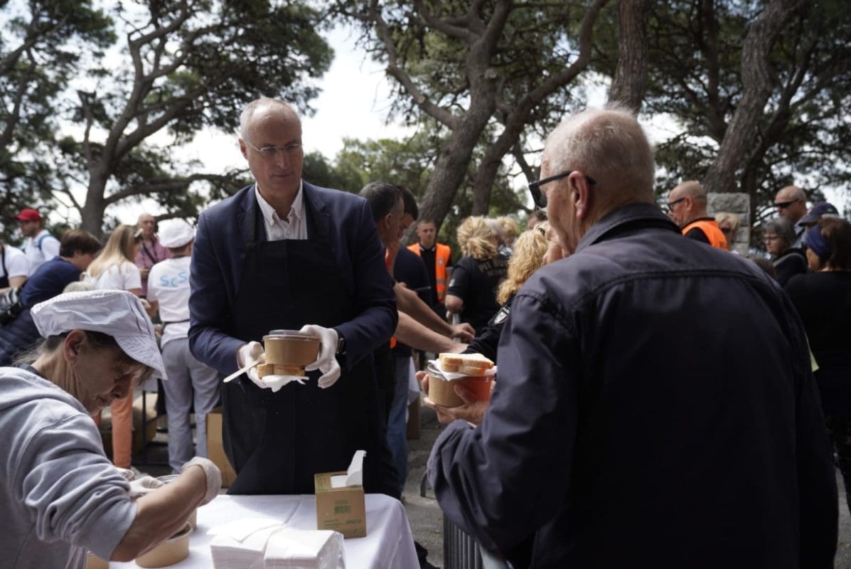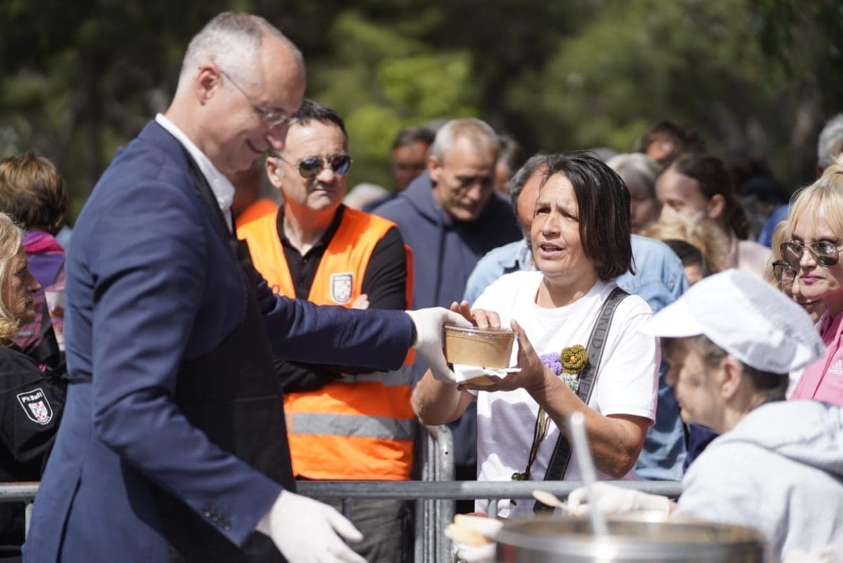 "Svim građankama i građanima Splita, ali i našim gostima čestitam Praznik rada. Želim vam da se danas odmorite i ovaj dan provedite sa svojim najmilijima", kazao je kratko Puljak dok je dijelio porcije fažola.