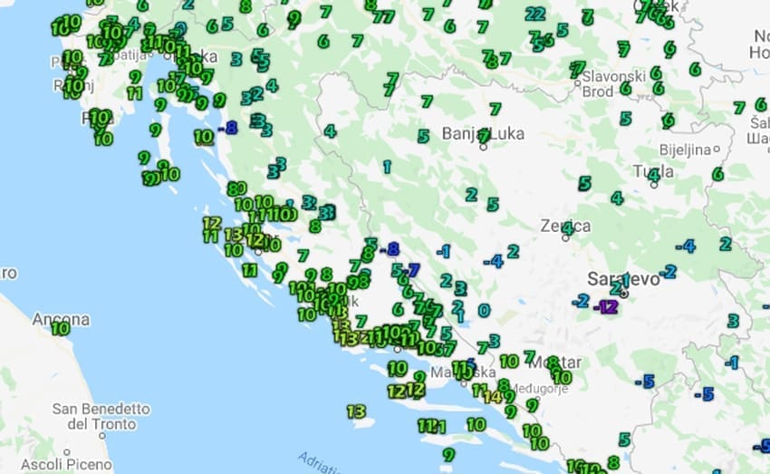Danas temperatura zraka u Splitu prema podacima stranice Pljusak.com iznosi između 10 i 11 stupnjeva Celzijevih, pretežno je vedro i vjetrovito vrijeme.
