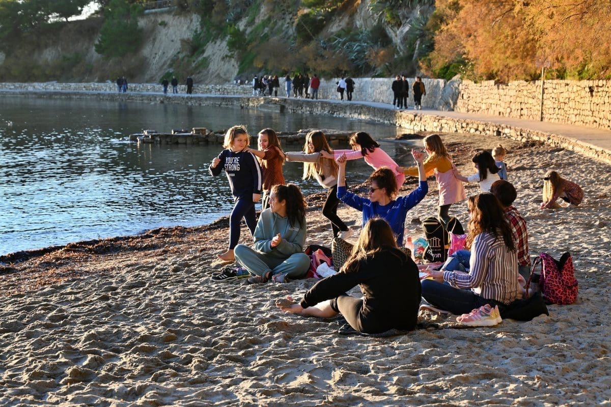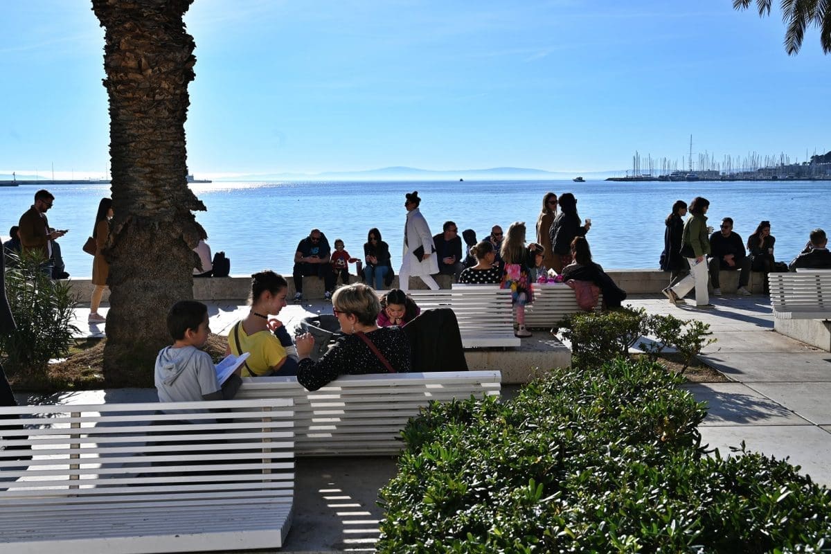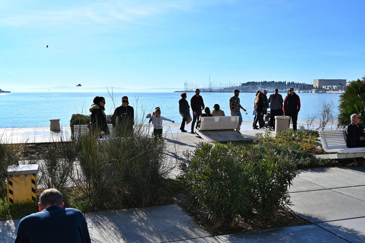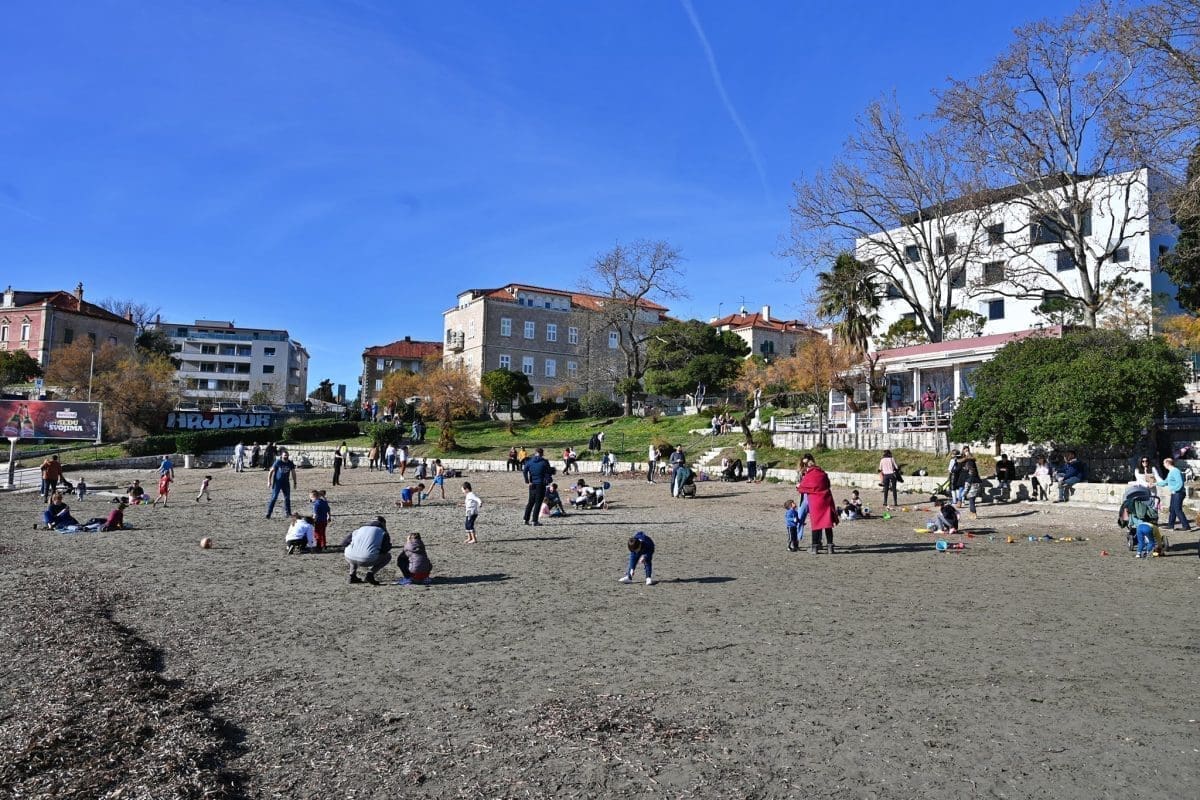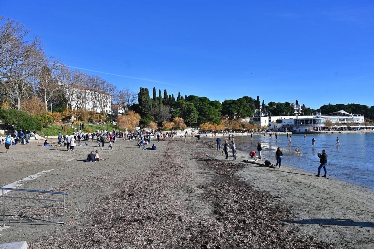 Prvi dan u novoj 2022. godini brojni Splićani su odlučili provesti na svježem zraku, uz more na popularnoj splitskoj plaži Bačvice.
