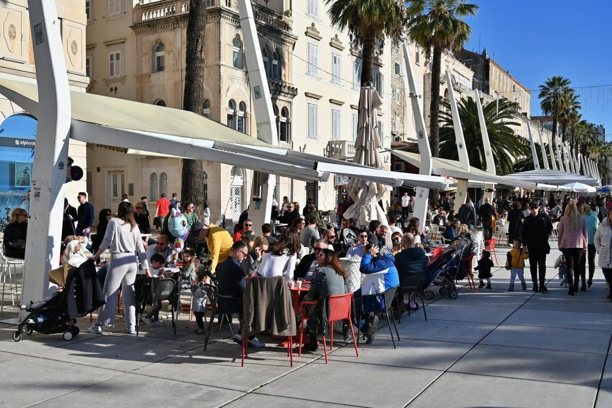 Osim na Bačvicama, mnogi Splićani su već od jutra 'napunili' kafiće na splitskoj Rivi, pa se oko podneva tražilo mjesto više za ispijanje kave na suncu.