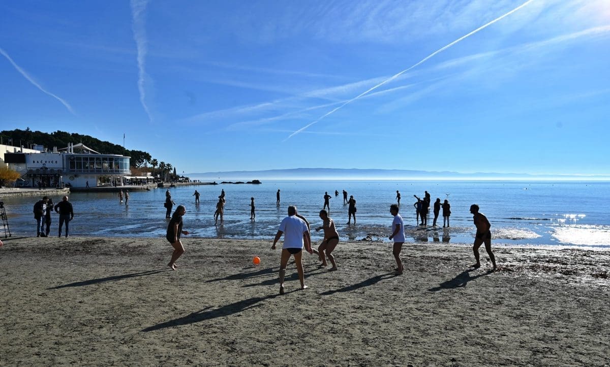 Smijeh, igra i veselje, sve se to moglo vidjeti danas u Splitu. Igrao se nogomet uz plažu, nije izostao ni tradicionalni novogodišnji picigin u kojem su sudjelovali poznati piciginaši.