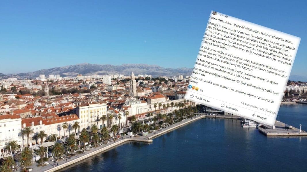 - Ja i žena smo "unajmili" stan na području Mejaša prije tjedan dana. Danas ujutro sam platio kombi da prebacim sve stvari u stan i na putu do stana me zvala žena koja nam je dala stan u najam da moramo izaći sa svim stvarima u roku par sati jer nas ne može prijavit jer stan nije na njeno ime i da je ne zanima ništa jer neće plaćat 50 tisuća kuna kaznu....- započeo je gospodin u svojoj objavi.