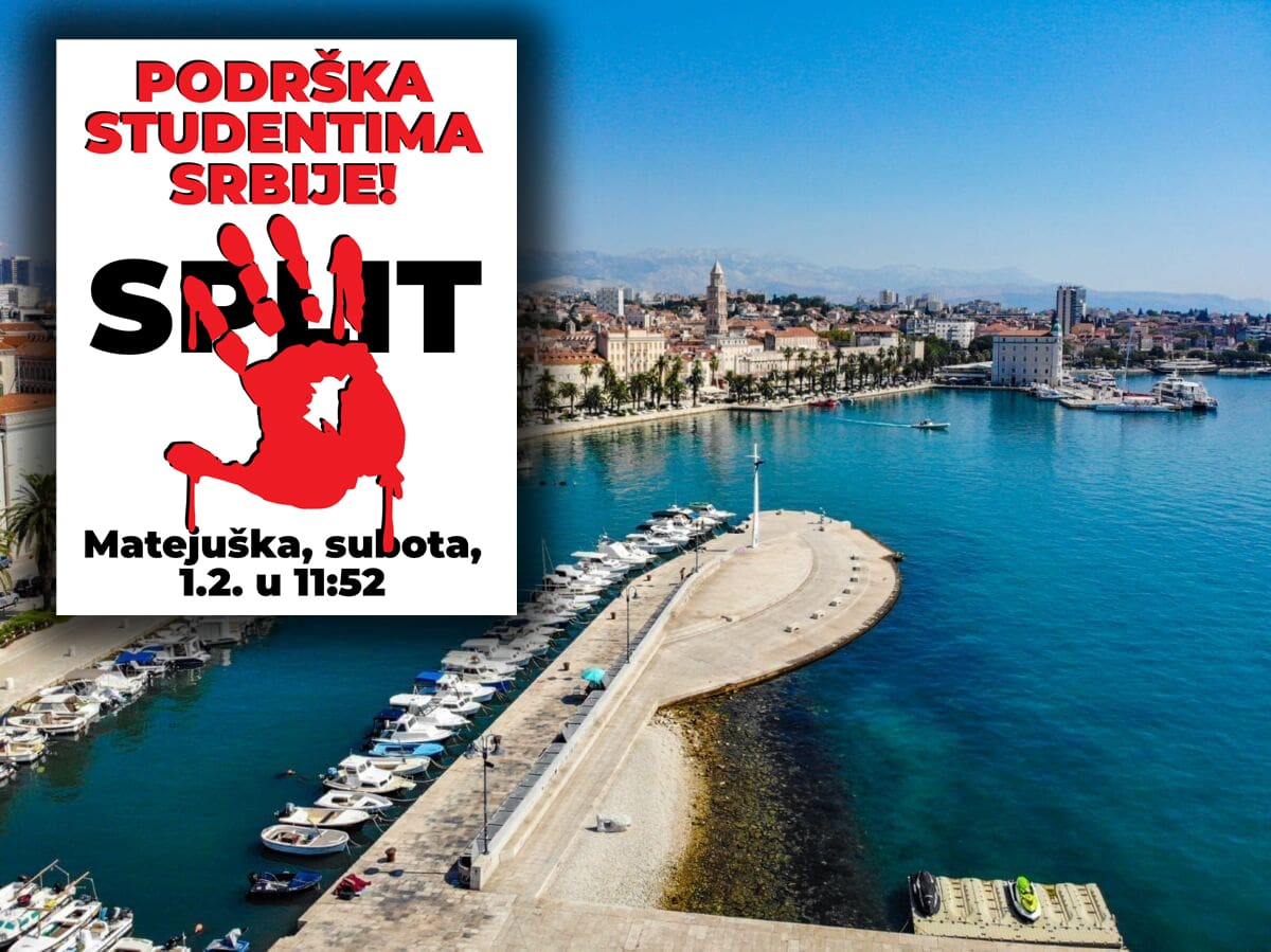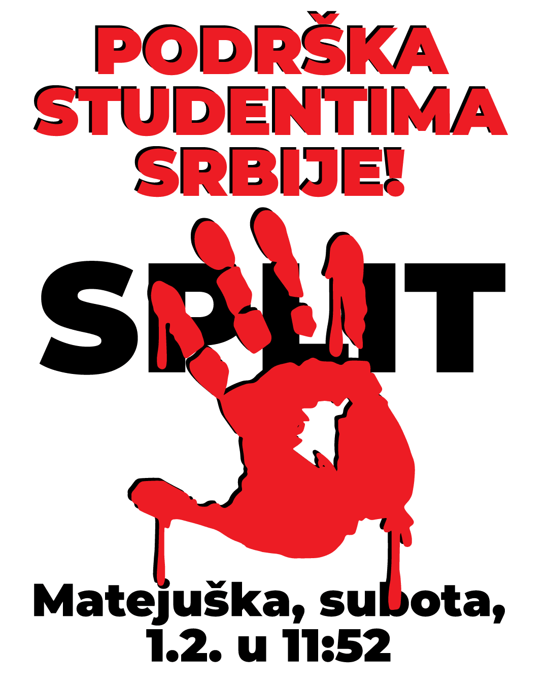 Pozivamo Split da u subotu na Matejušci,15 minutnom šutnjom podrži studente iz Srbije i pokaže da potreba za uređenim i pravednim društvom nema granica!", kažu u svom priopćenju.