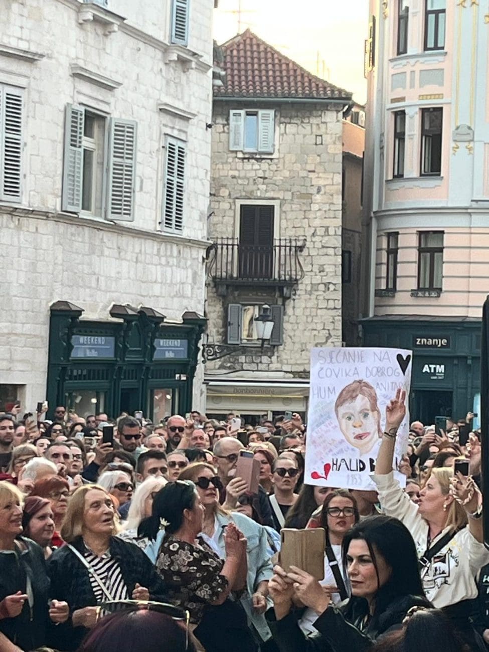 Danas u 17 sati na splitskoj Pjaci okupilo se više stotina građana kako bi odali počast Halidu Bešliću, legendarnom pjevaču koji je preminuo 8. listopada.